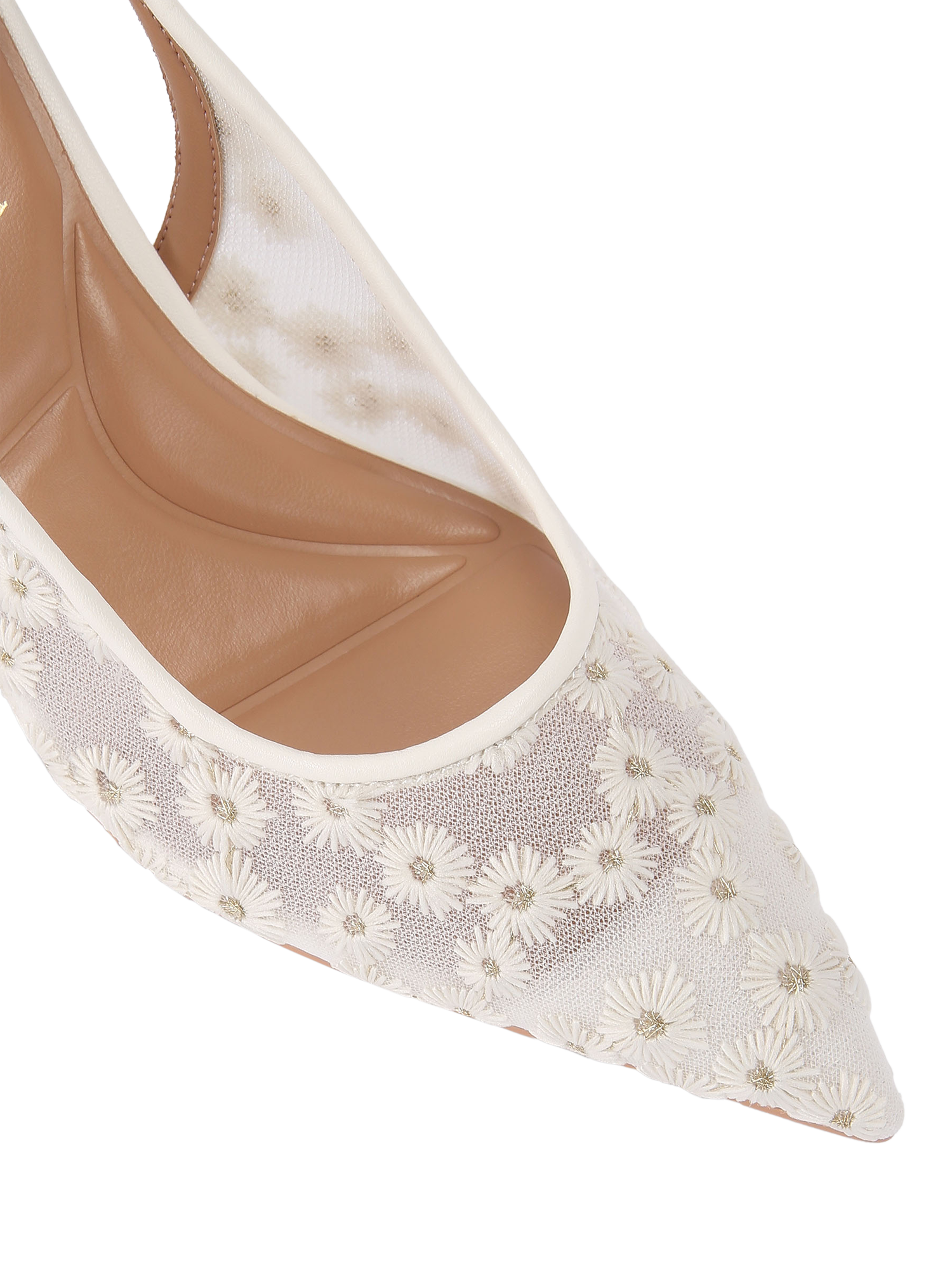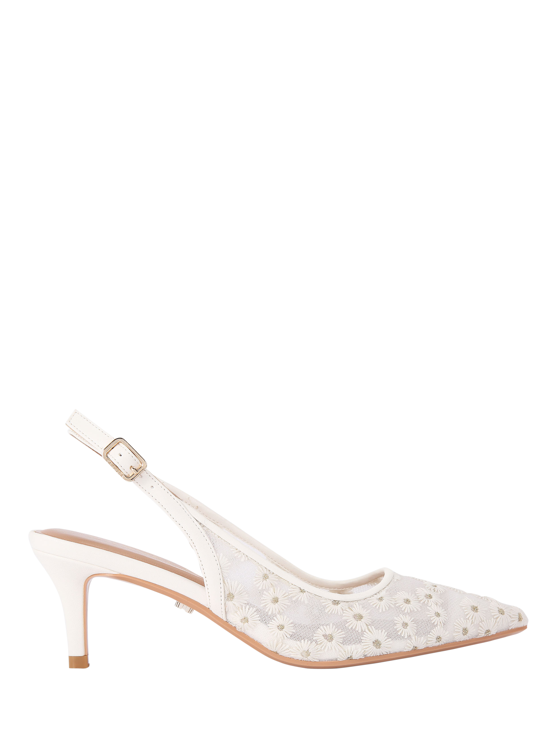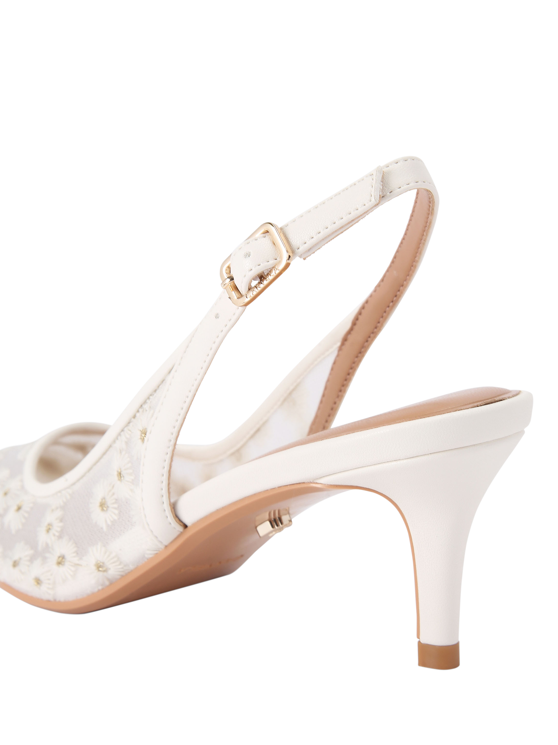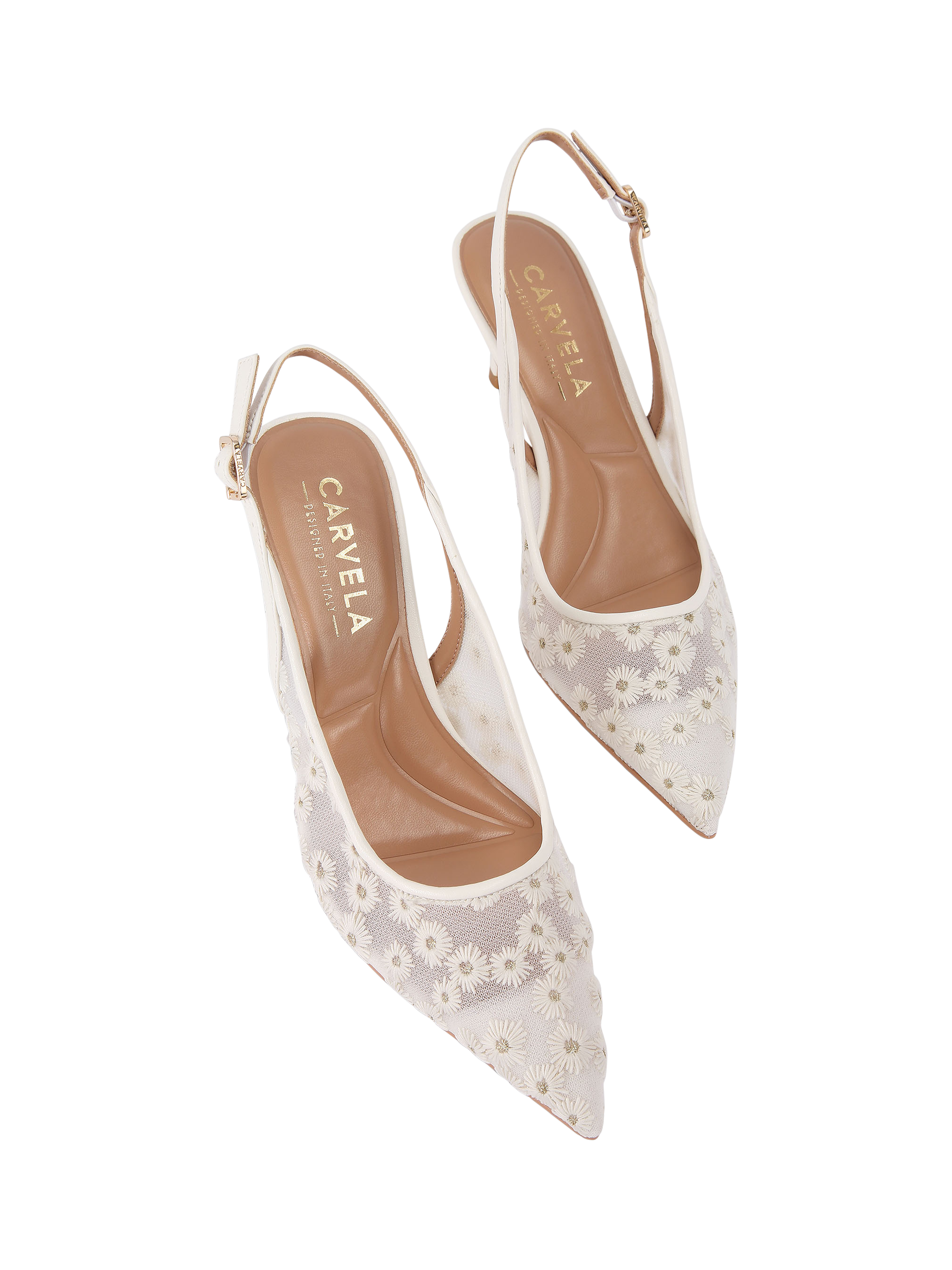 In a traditional court silhouette, this pair of slingbacks by Carvela is stitched with floral textile mesh uppers for a premium feel. Set on a stiletto heel, they are finished with a pointed toe.
