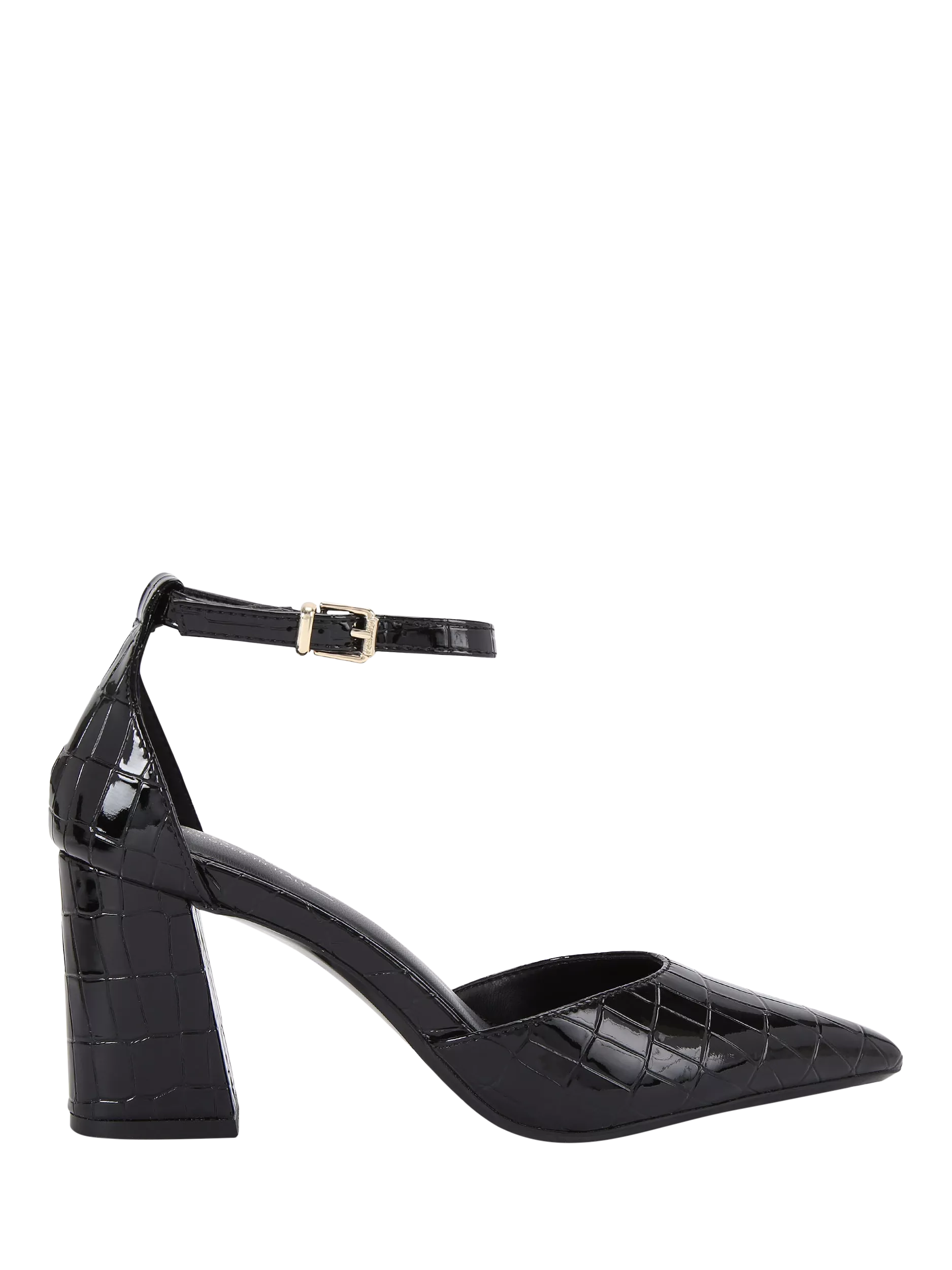 High block heels by Carvela. The pointed closed toe and croc-effect bring personality, while the comfortable buckle fastening ensures you stay confident and ready for anything on your agenda.