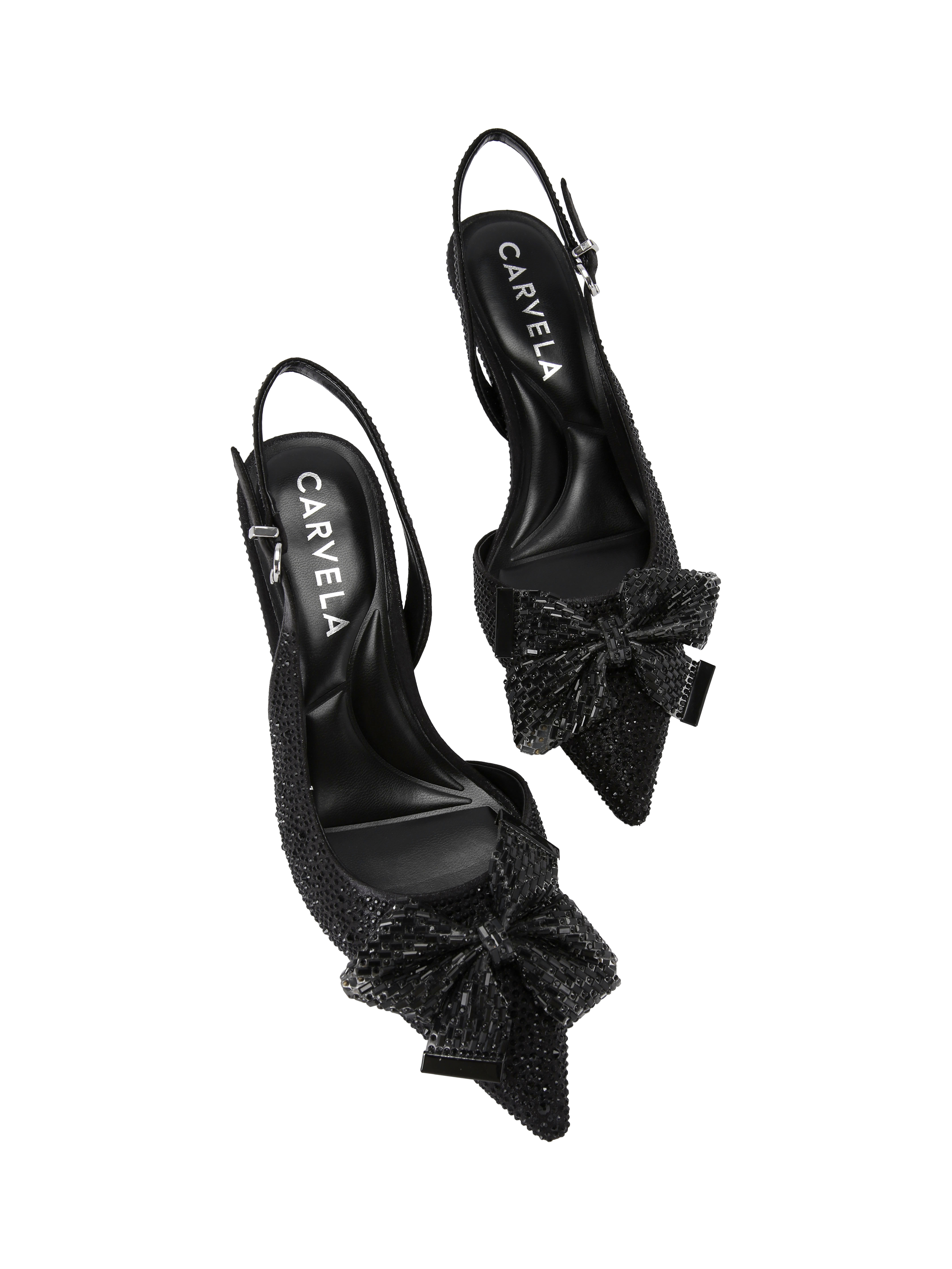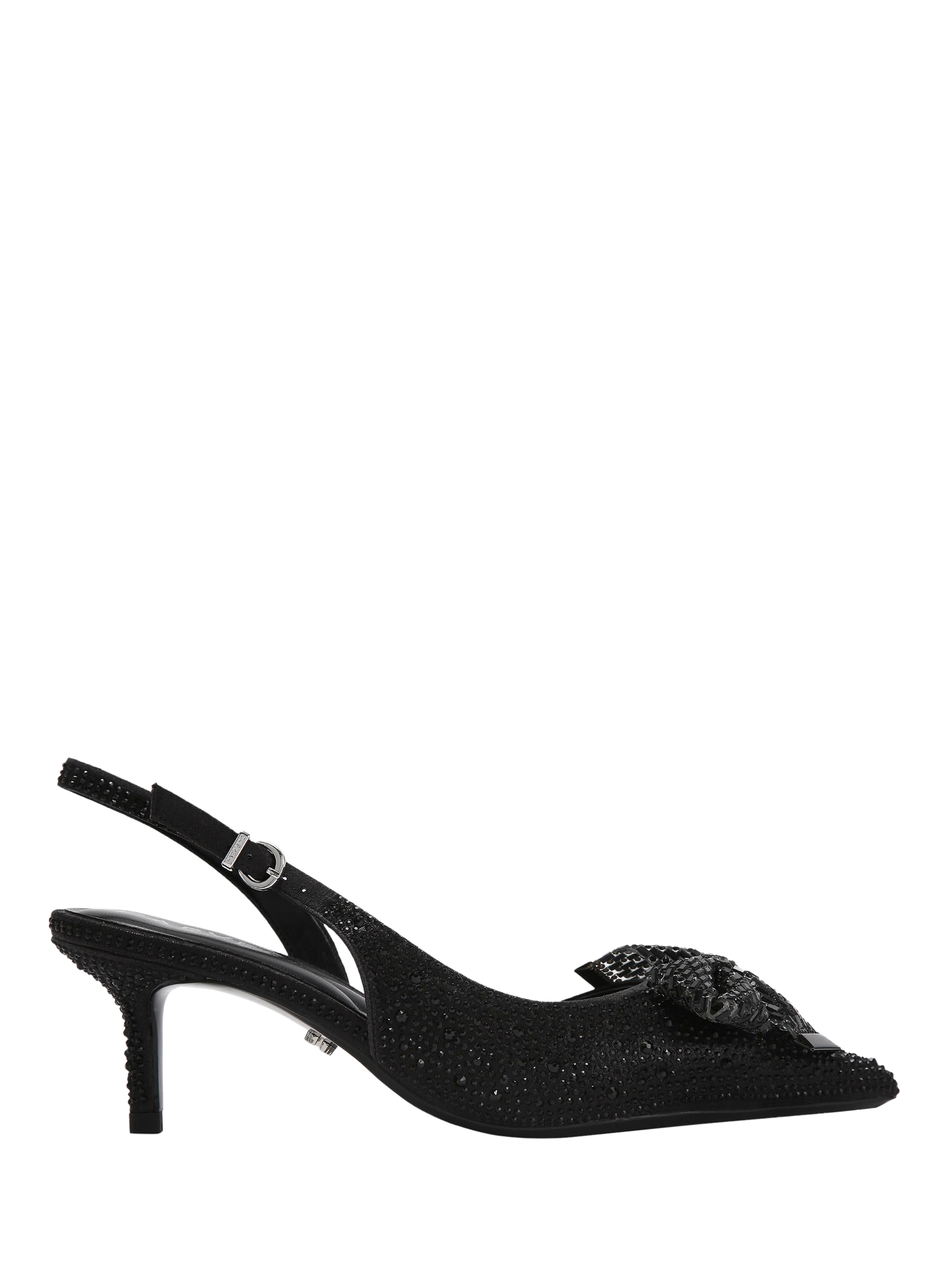 Bringing a sparkling edge to your footwear collection, this pair of slingback courts from Carvela is made with metallic uppers. Sitting on a kitten heel, they feature a pointed toe with a bow detail for a sharp finish.