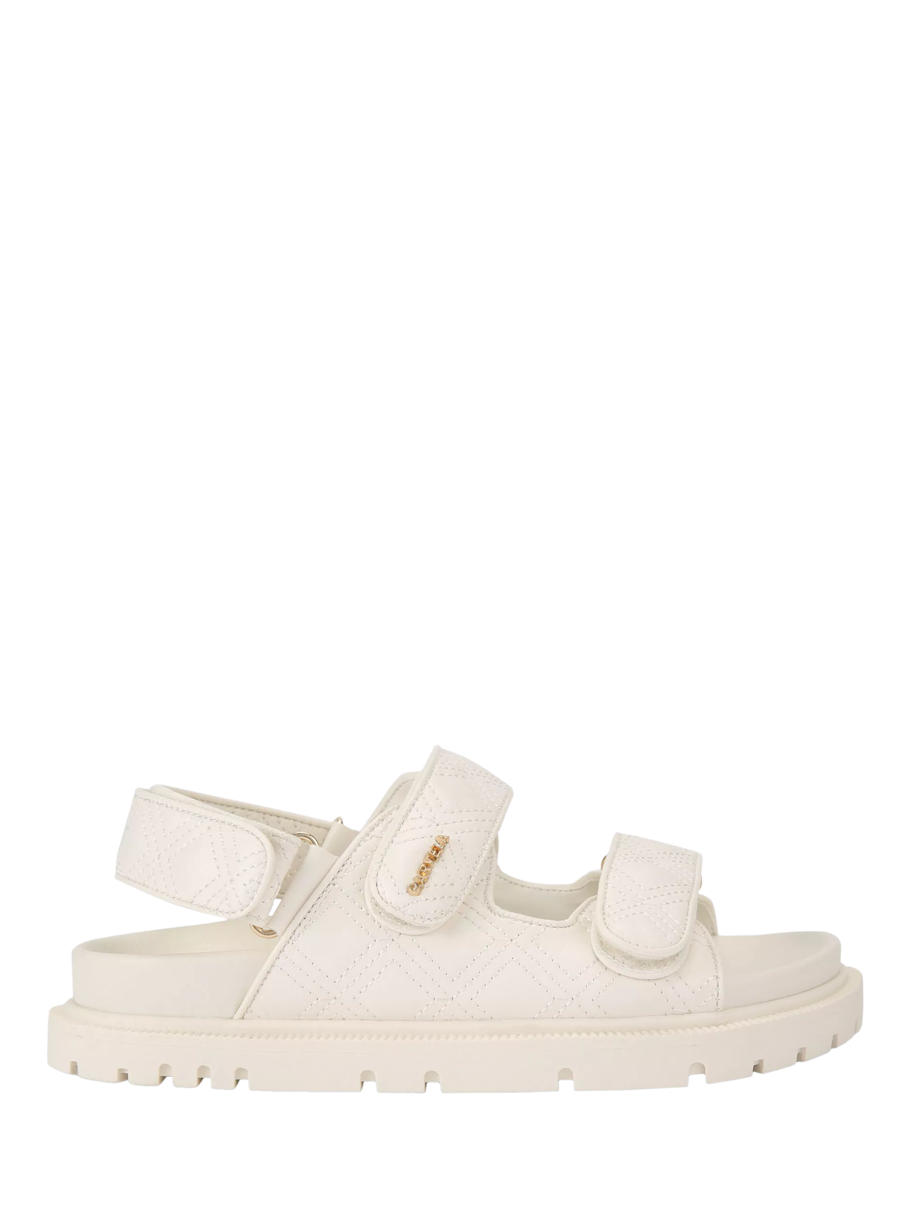 Bringing a summery vibe to your wardrobe, this pair of quilted strappy sandals from Carvela is rendered in a long-lasting fabric for longevity of wear. Set on a flat heel, they will keep you on-trend this season.