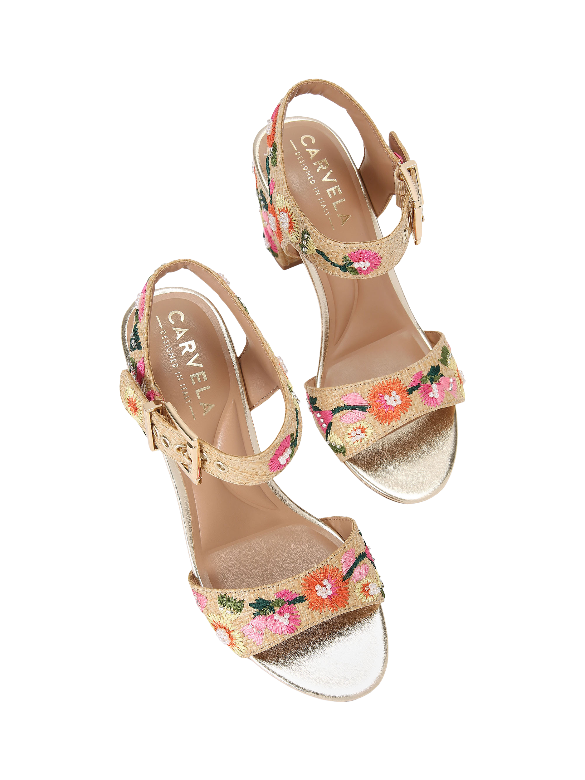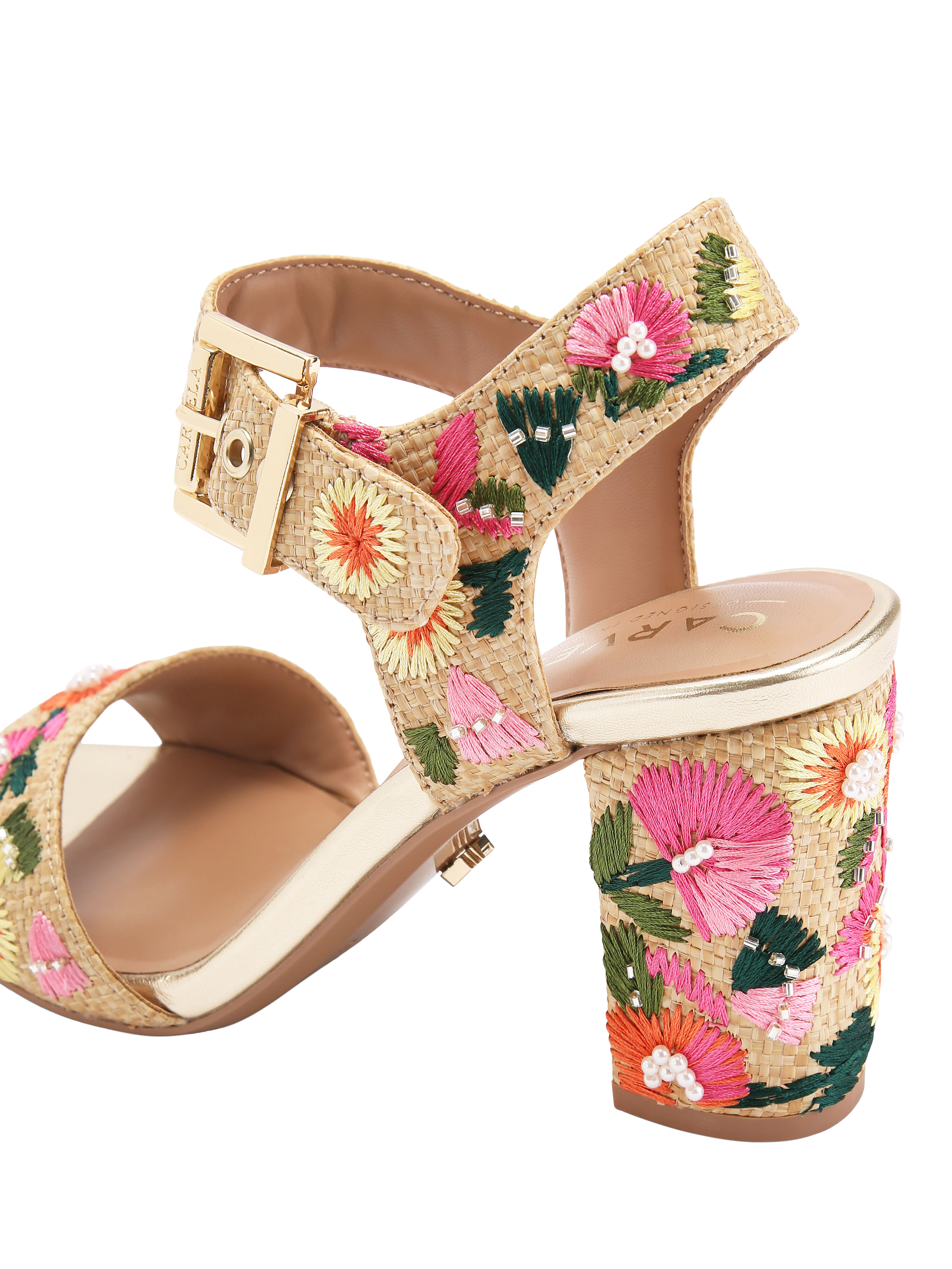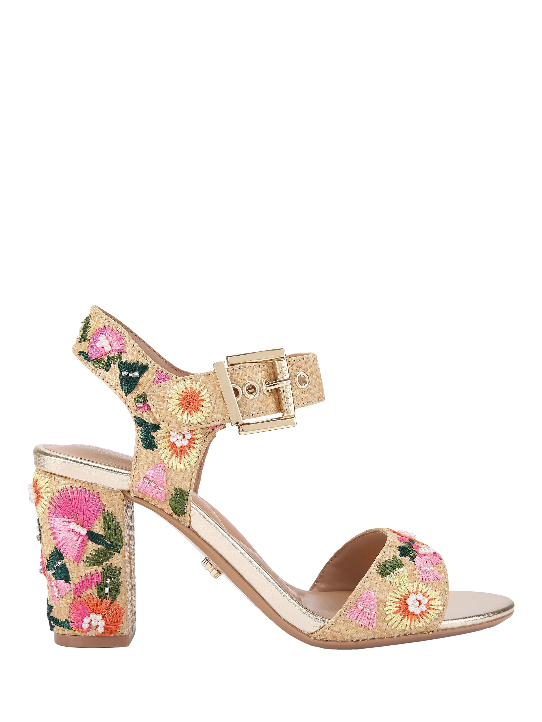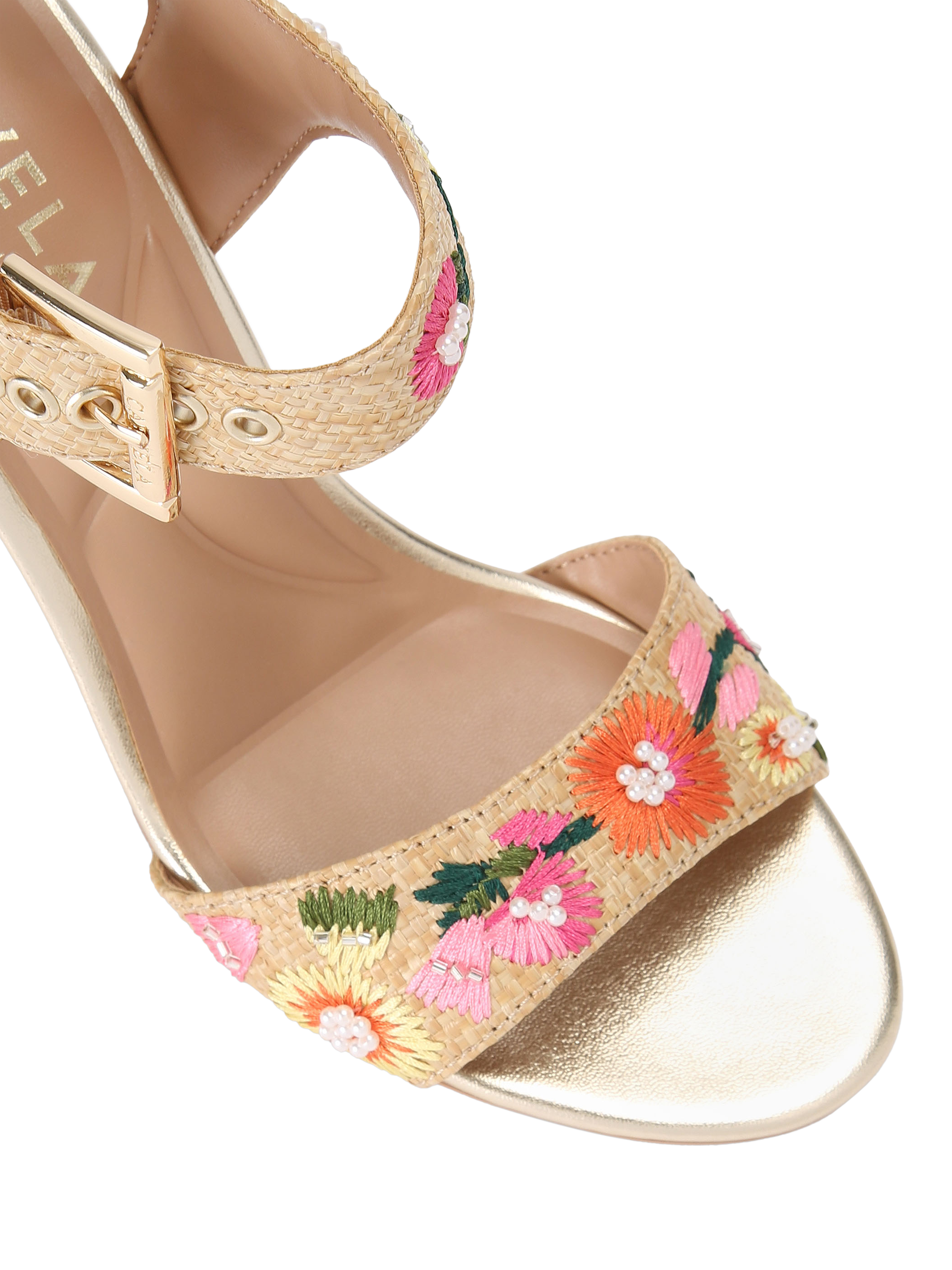 These Sadie Embroidery sandals are made from raffia fabric that is embroidered with flowers for a summery finish.