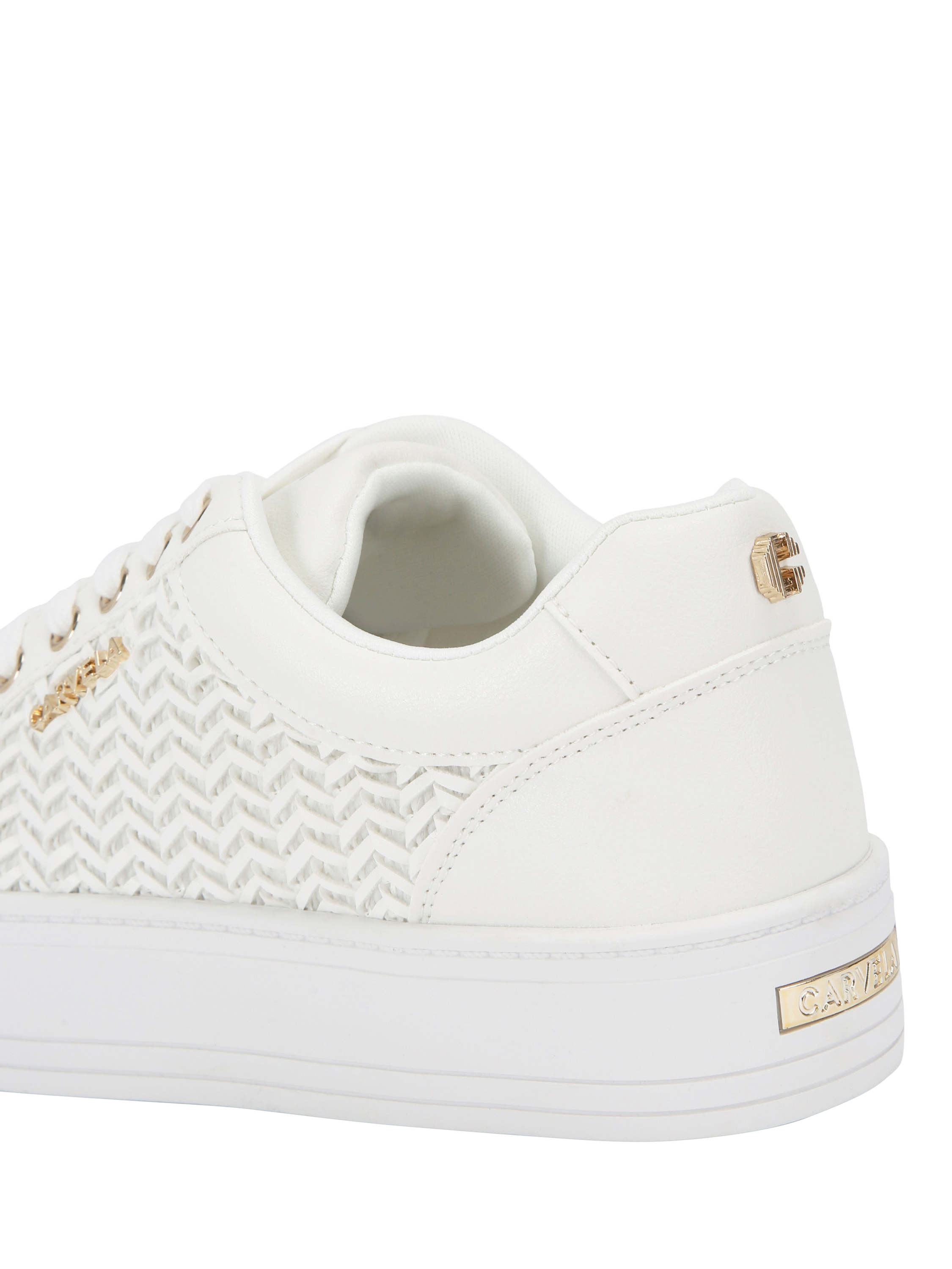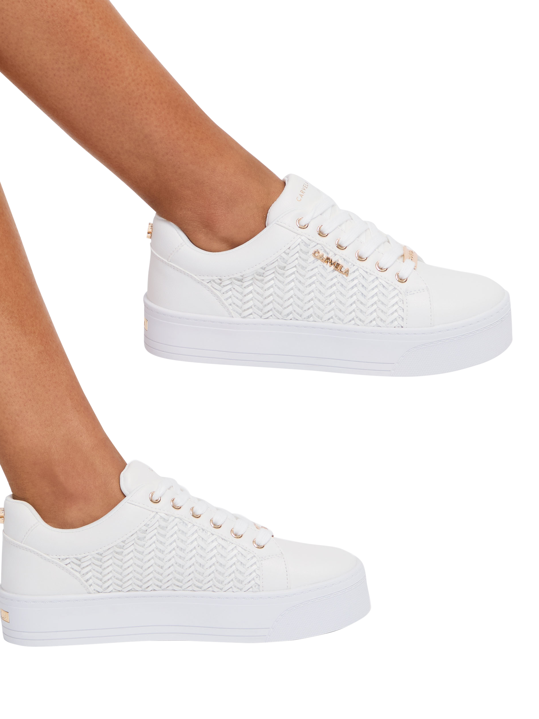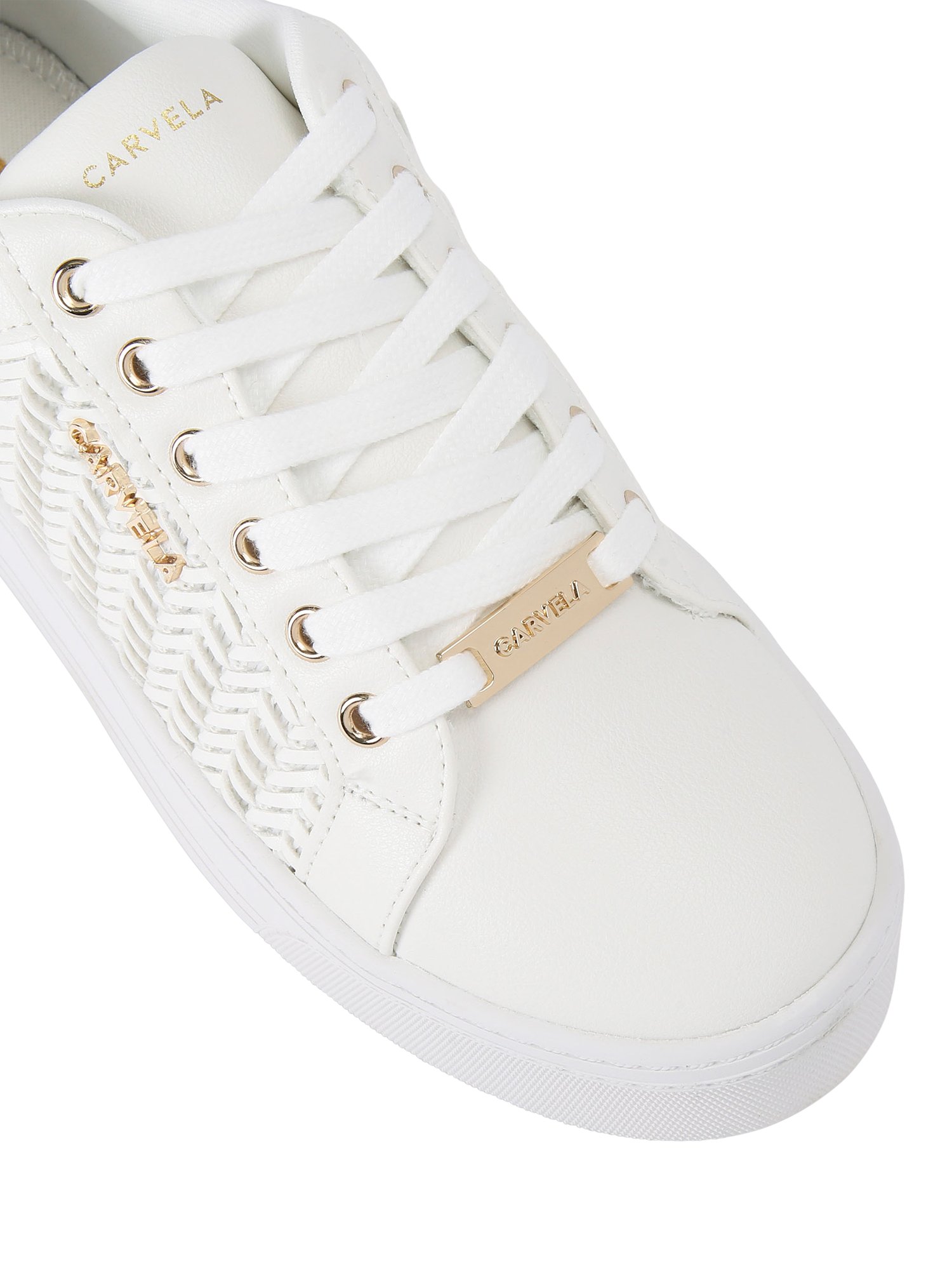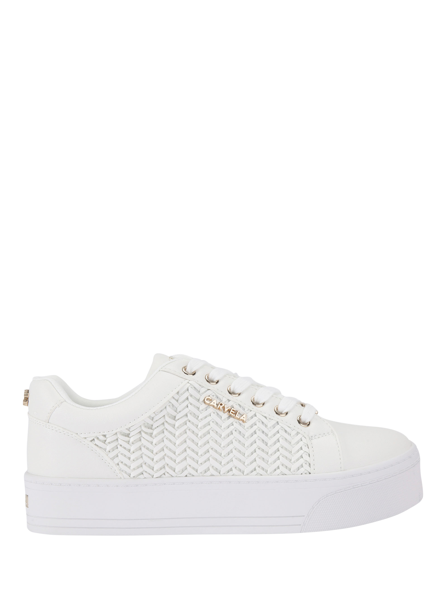 Bringing a fresh take on off-duty dressing, this pair of trainers by Carvela is rendered in a long-lasting fabric with woven side panels. Set on a flat heel, they are finished with a closed toe and a classic lace-through front.