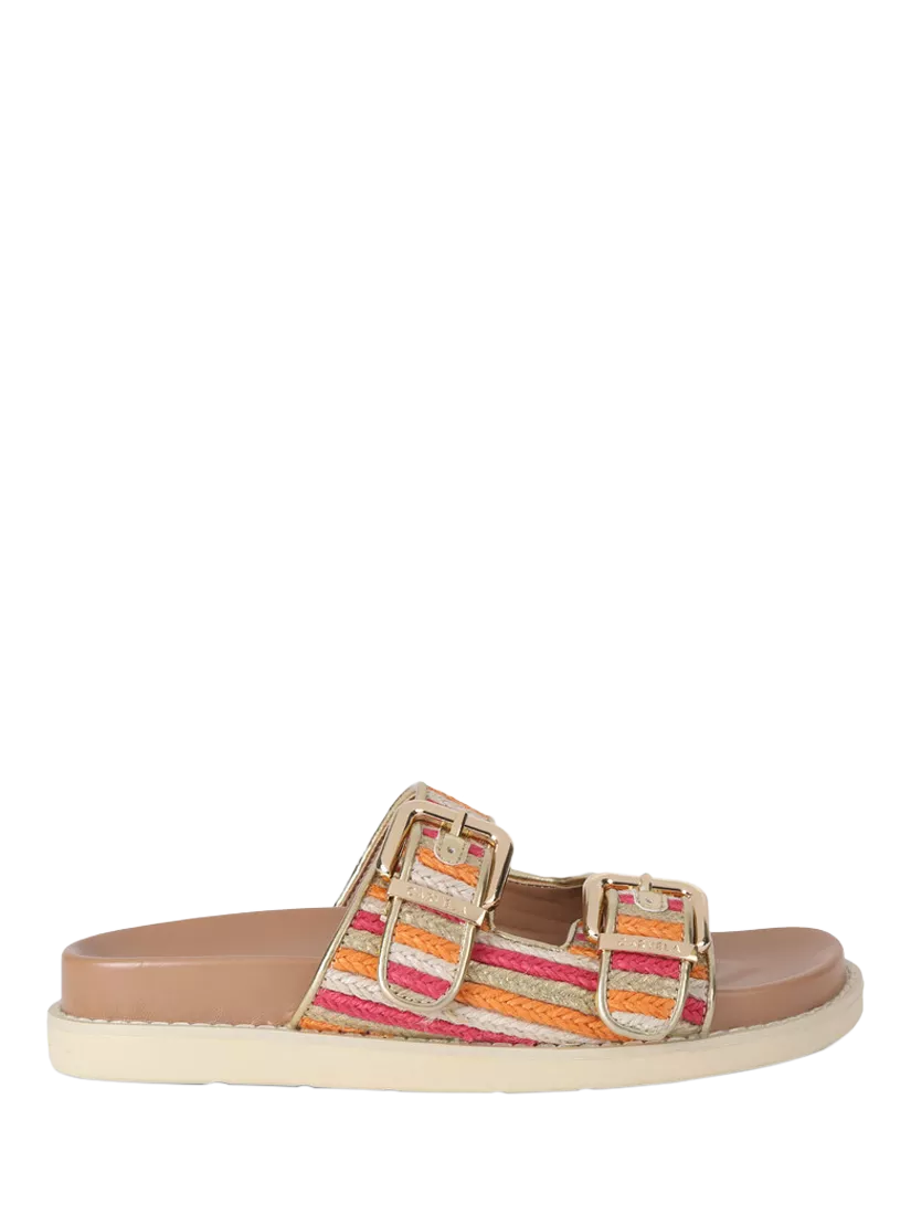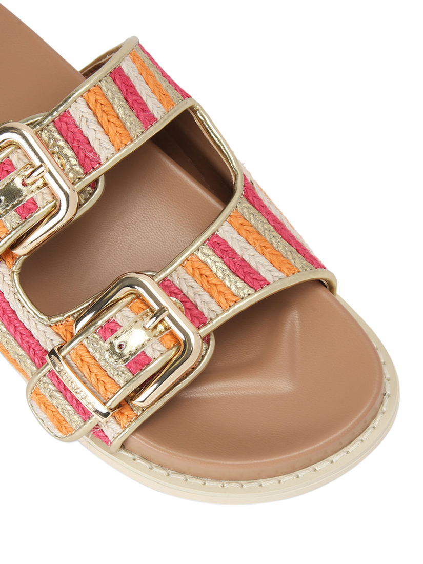 These Soprano Flat sandals are crafted from braided fabric for a summery finish. With two gold buckles across the foot, the sole is rubber.