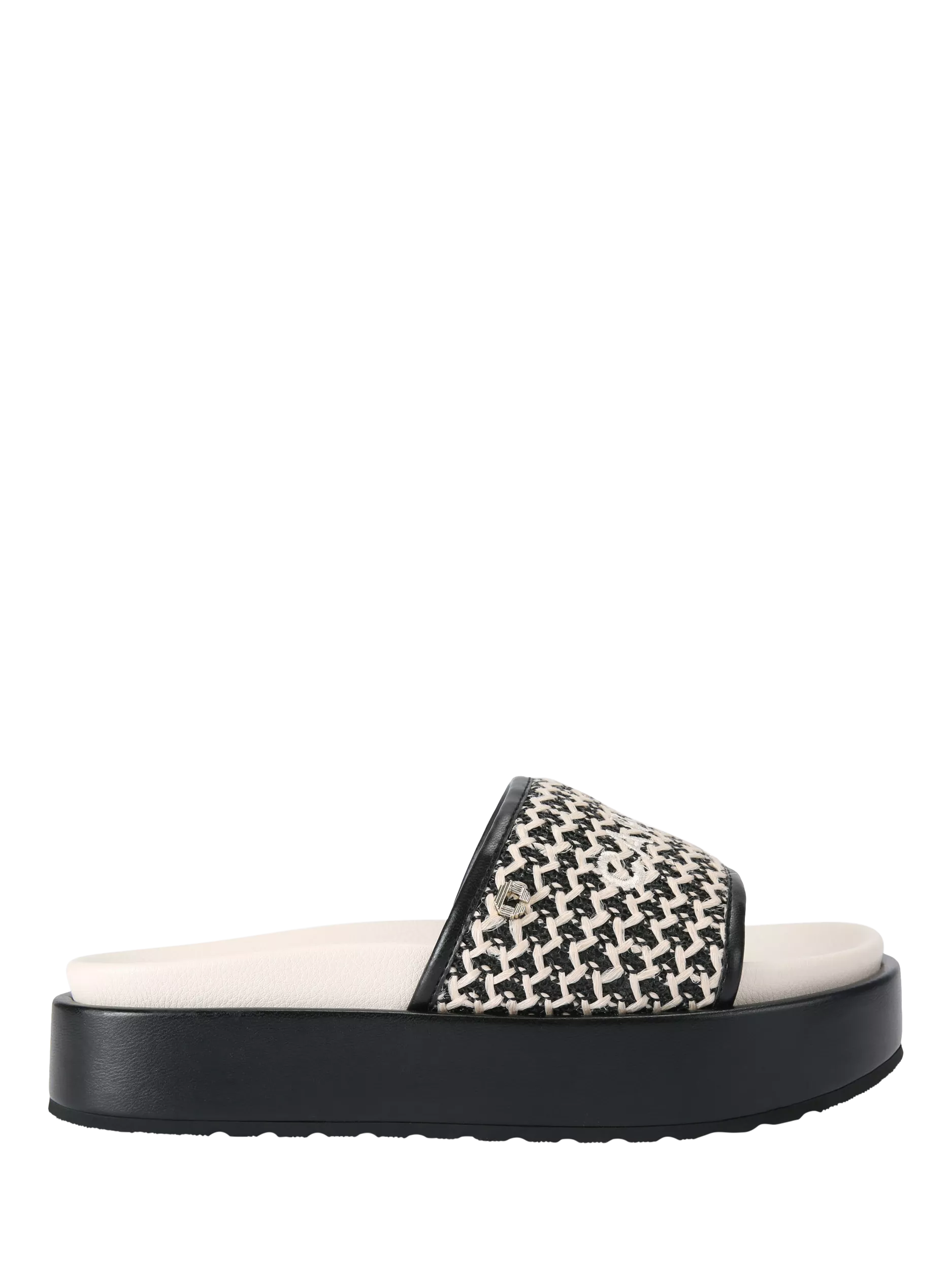 This pair of Sorrento Flatform sandals features a woven raffia upper with stitched branding. There is a gold-tone Icon 'C' stud on the outer side.