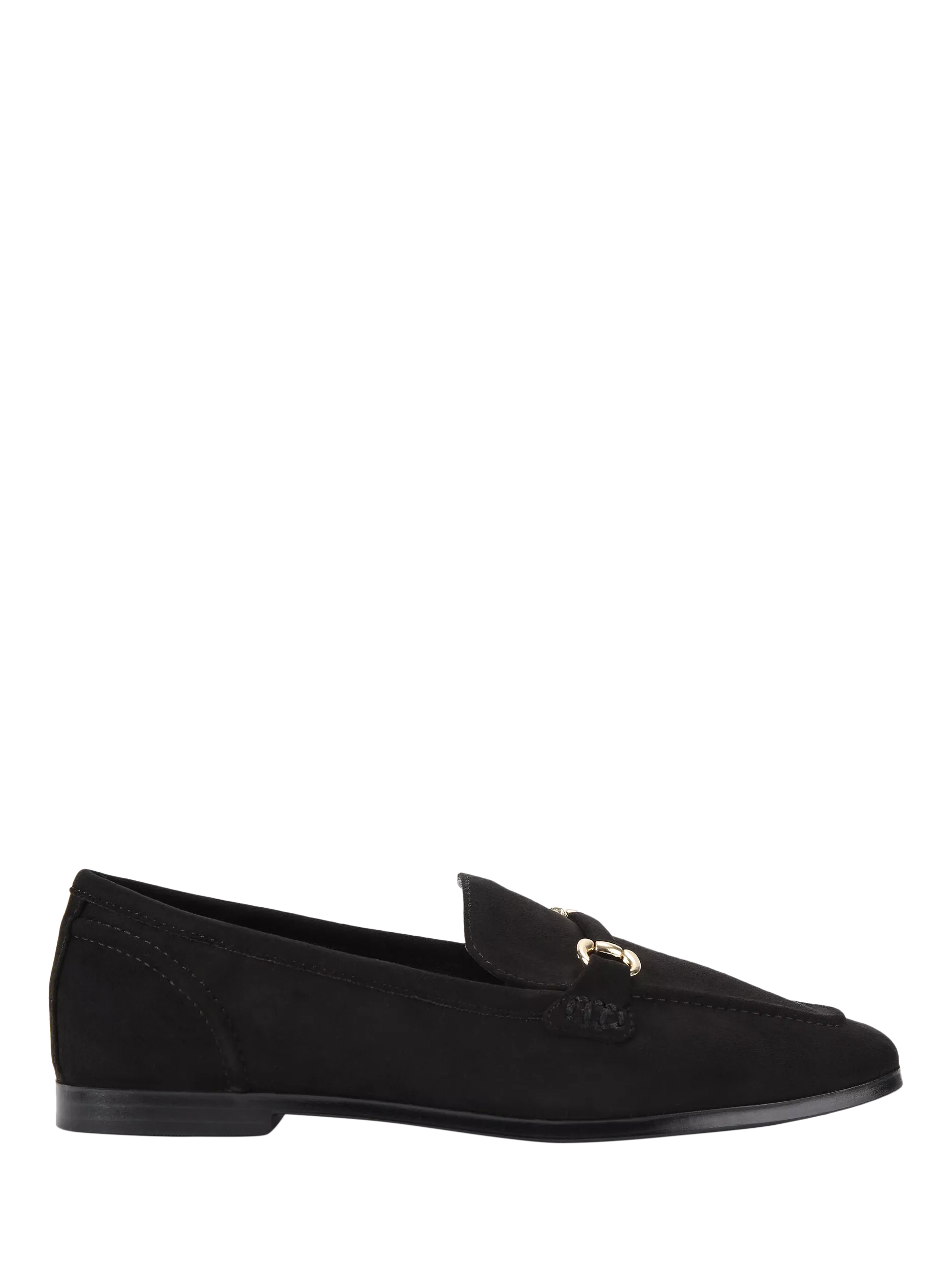This Spello Loafer is crafted from black microsuede, with a gold-tone strap across the vamp.
