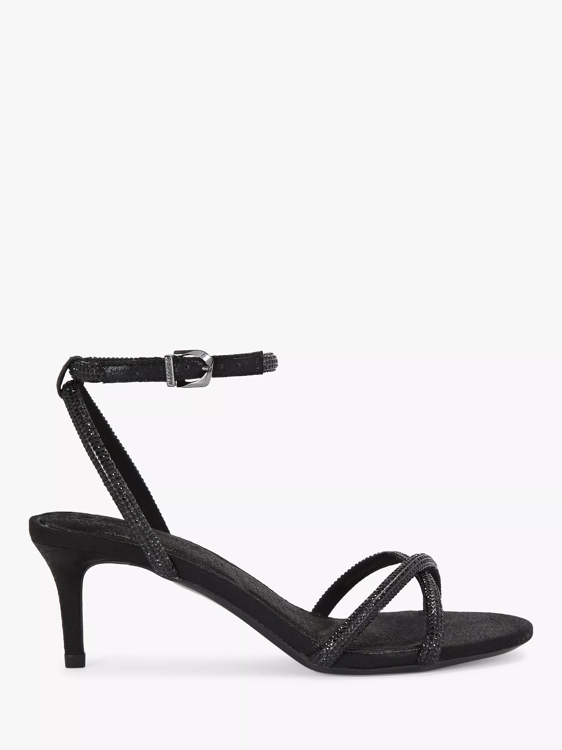 Sitting on a stiletto heel, they are finished with a rounded open-toed design ideal for warmer seasons.