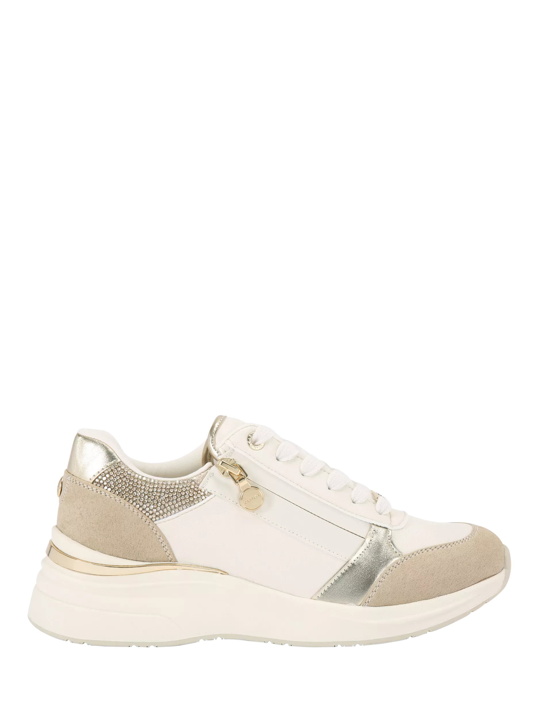 Carvela runner trainers blend sharp style and comfort, with embellished accents. With flat soles, a closed round toe and easy zip, they're ready for whatever plans you create - supportive, practical, and suited for your day-to-day pace.
