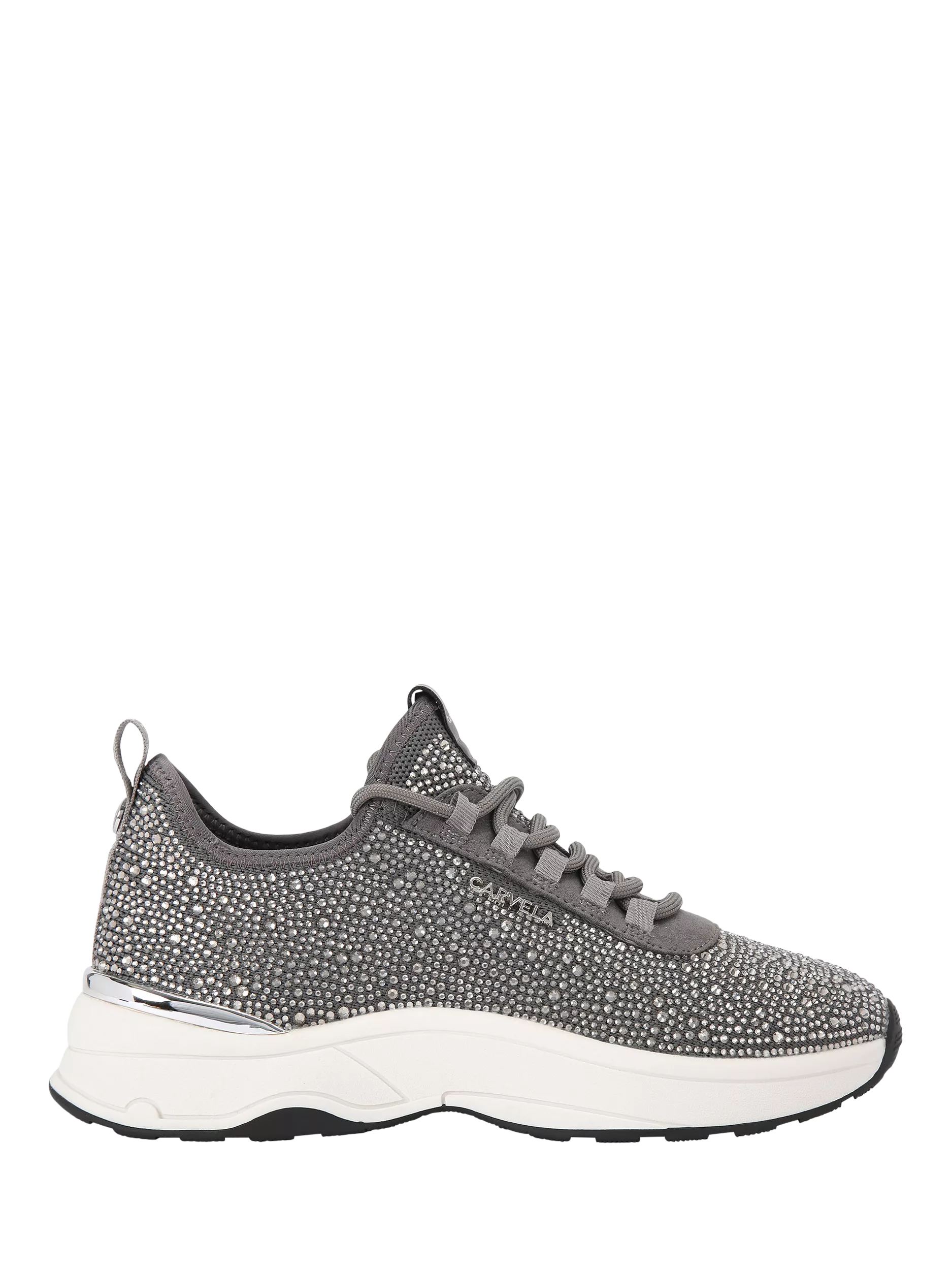 From Carvela, these Swift Jewel trainers feature a fabric upper with crystal embellishment. The front laces up with foil branding on the tongue and eyestay.