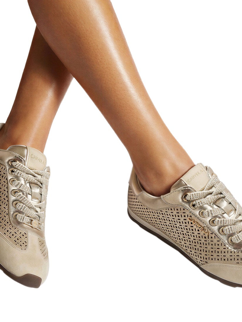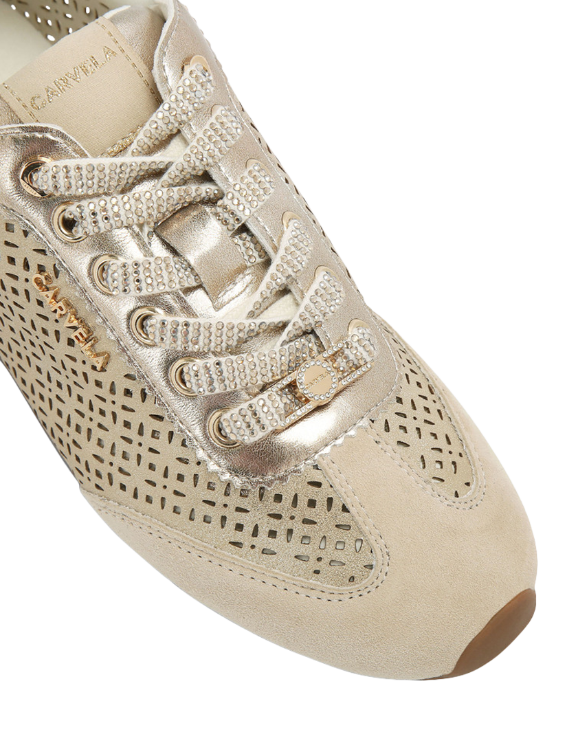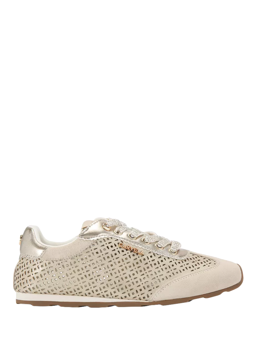 Laser-cut detail trainers by Carvela, crafted with suede and metallic accents and an almond toe for all-day comfort. The minimalist profile is suited to casual summer occasions, offering a versatile option that’s easy to wear.