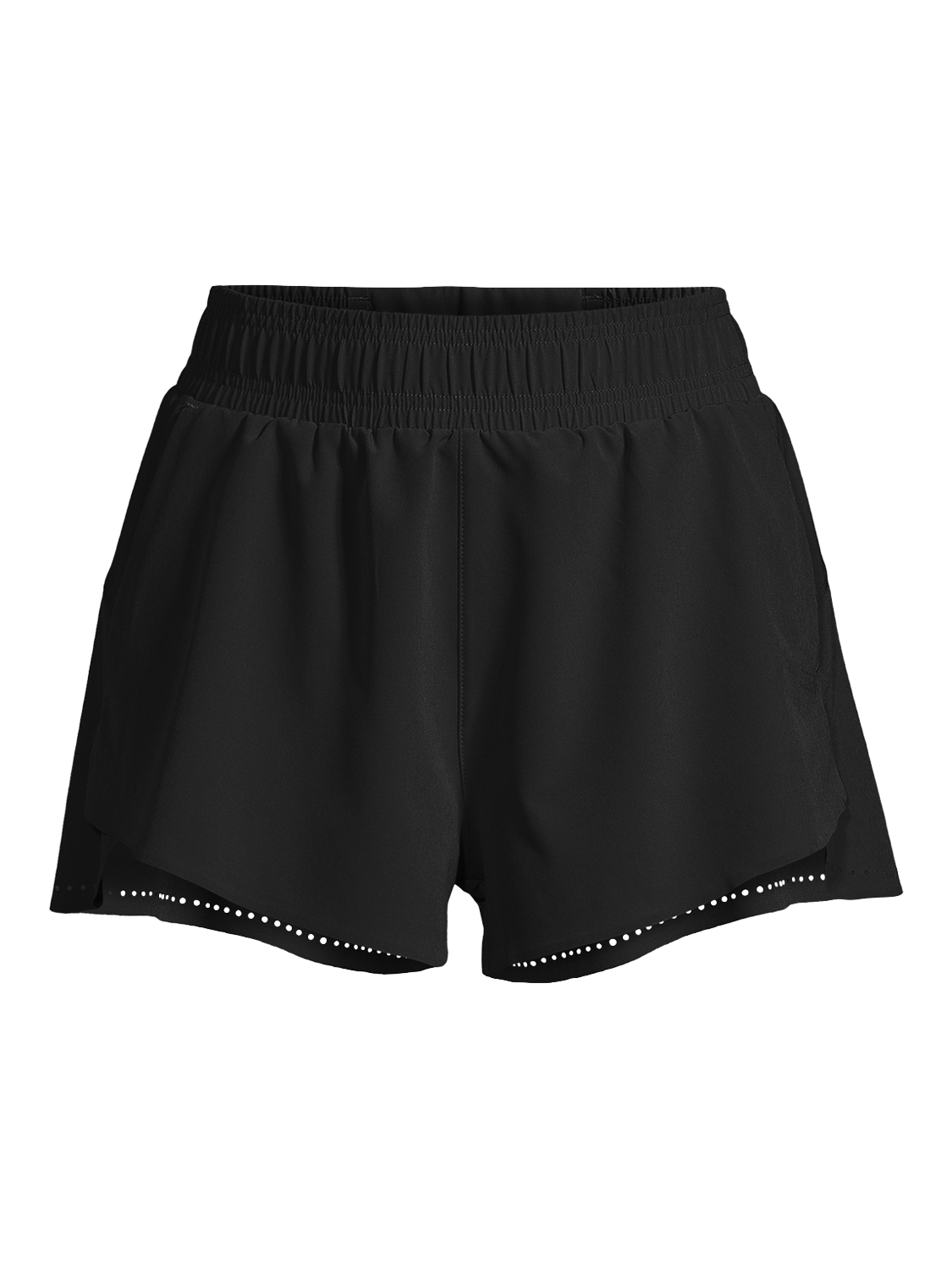 Light and airy workout shorts designed for running and sweaty workouts. With a soft, built-in inner lining for extra coverage. Featuring a wide elastic waistband, side pockets and a hidden key pocket at the back waist.