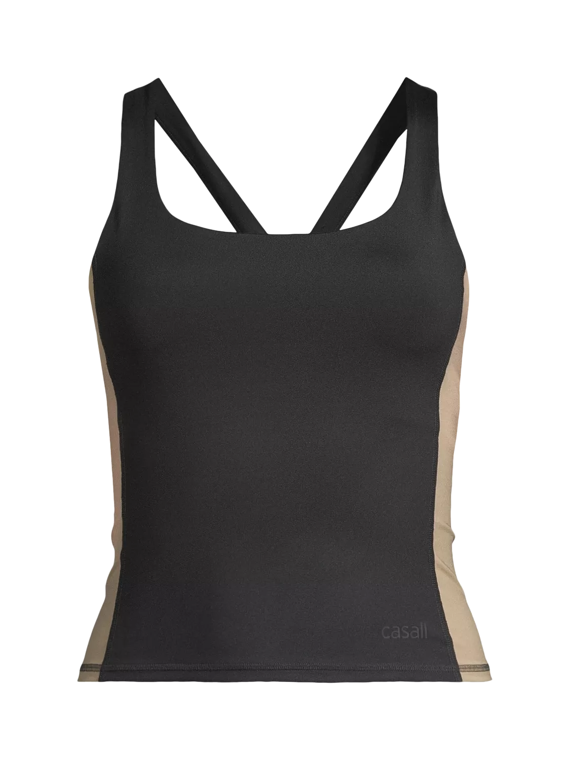 A soft training tank top with contrast-coloured panels that enhance your silhouette. Made in Casall's signature Smooth Shaping® fabric, a performance material focused on sweat-wicking, high comfort, and a light shaping effect. Designed for gym and studio training, it features crossed shoulder straps and a built-in bra.