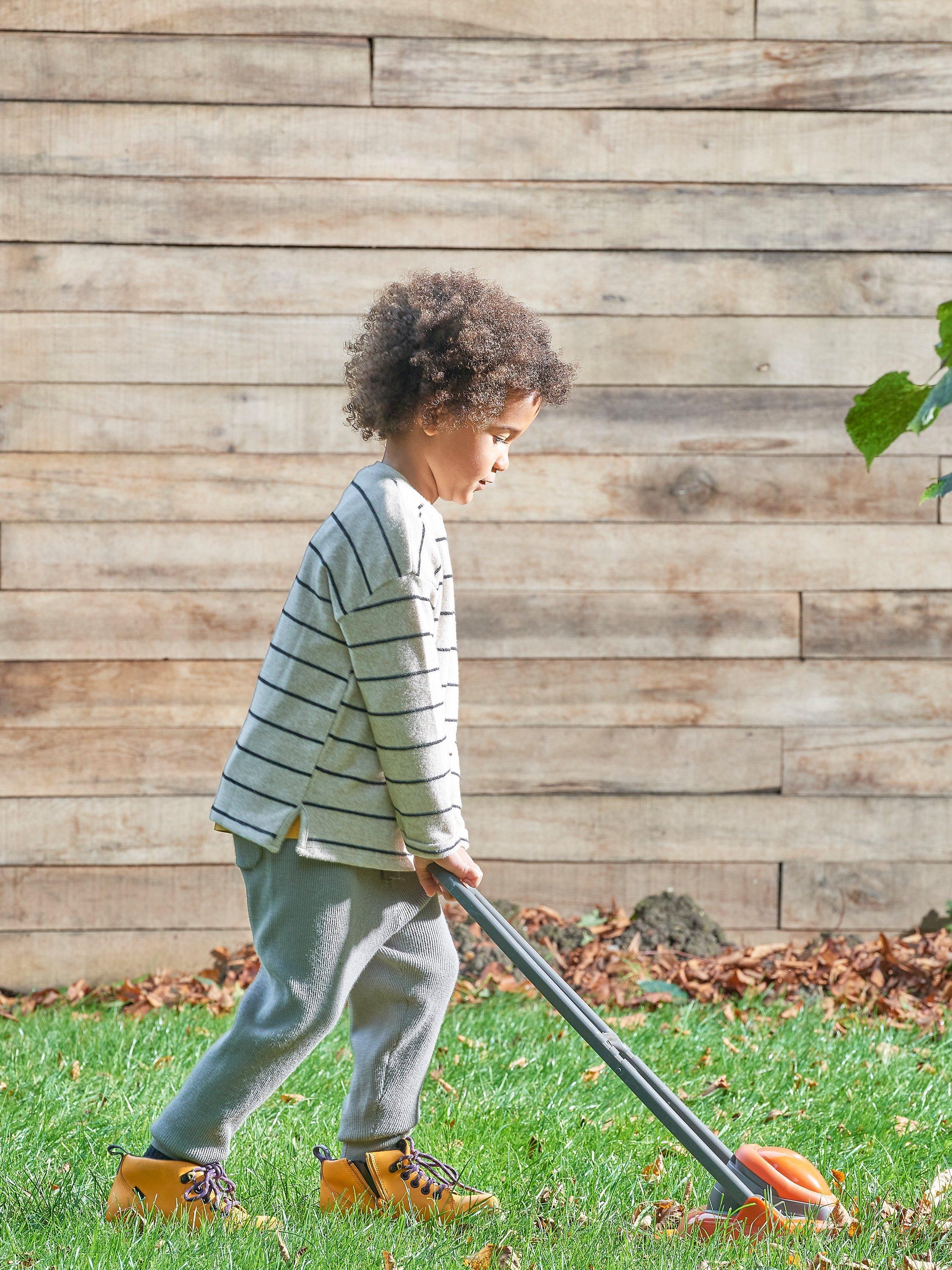 A fully licensed replica of the iconic Flymo Lawn Mower that little gardeners will love playing with indoors or outside.