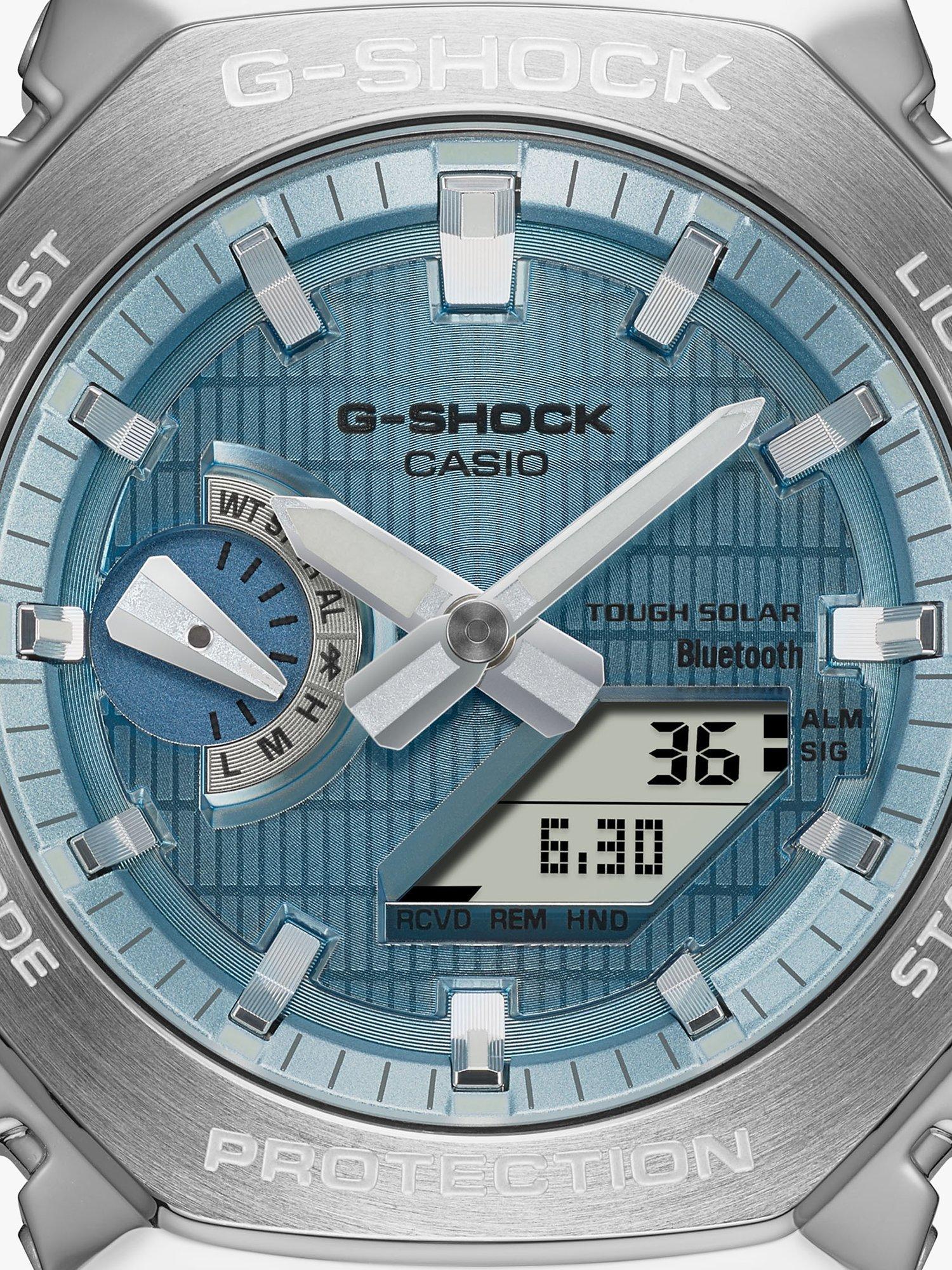 Metal Covered 2100 watch. Boasting Bluetooth and Tough Solar technology, powered by any light source, saving time and money as no battery change is required. Packed with features you know and love, including a shock-resistant structure, smartphone link, double LED light, world time and more.