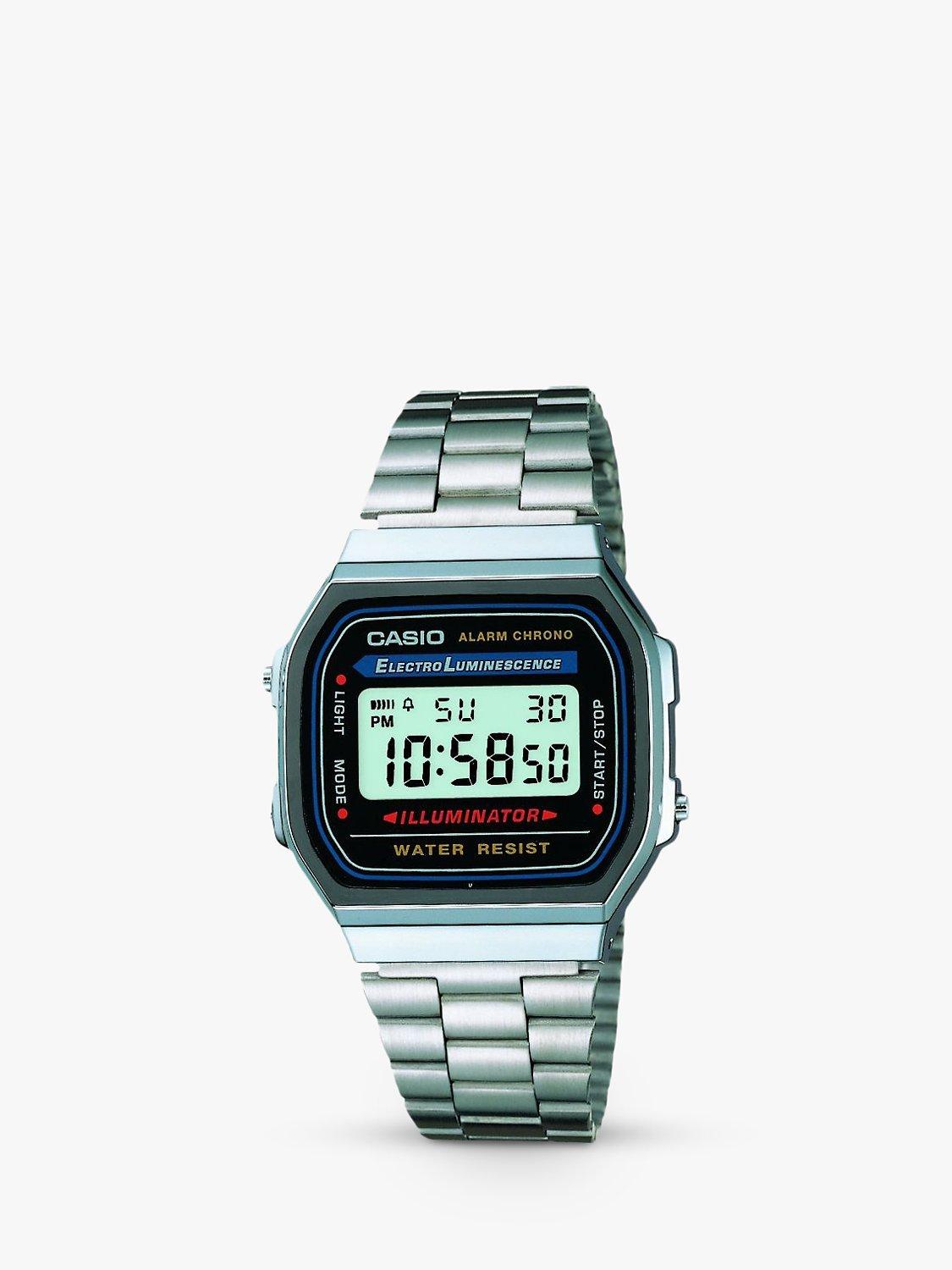 In keeping with the most dominant trends, this timepiece from Casio is punctuated with a square case and includes a day and date display window.