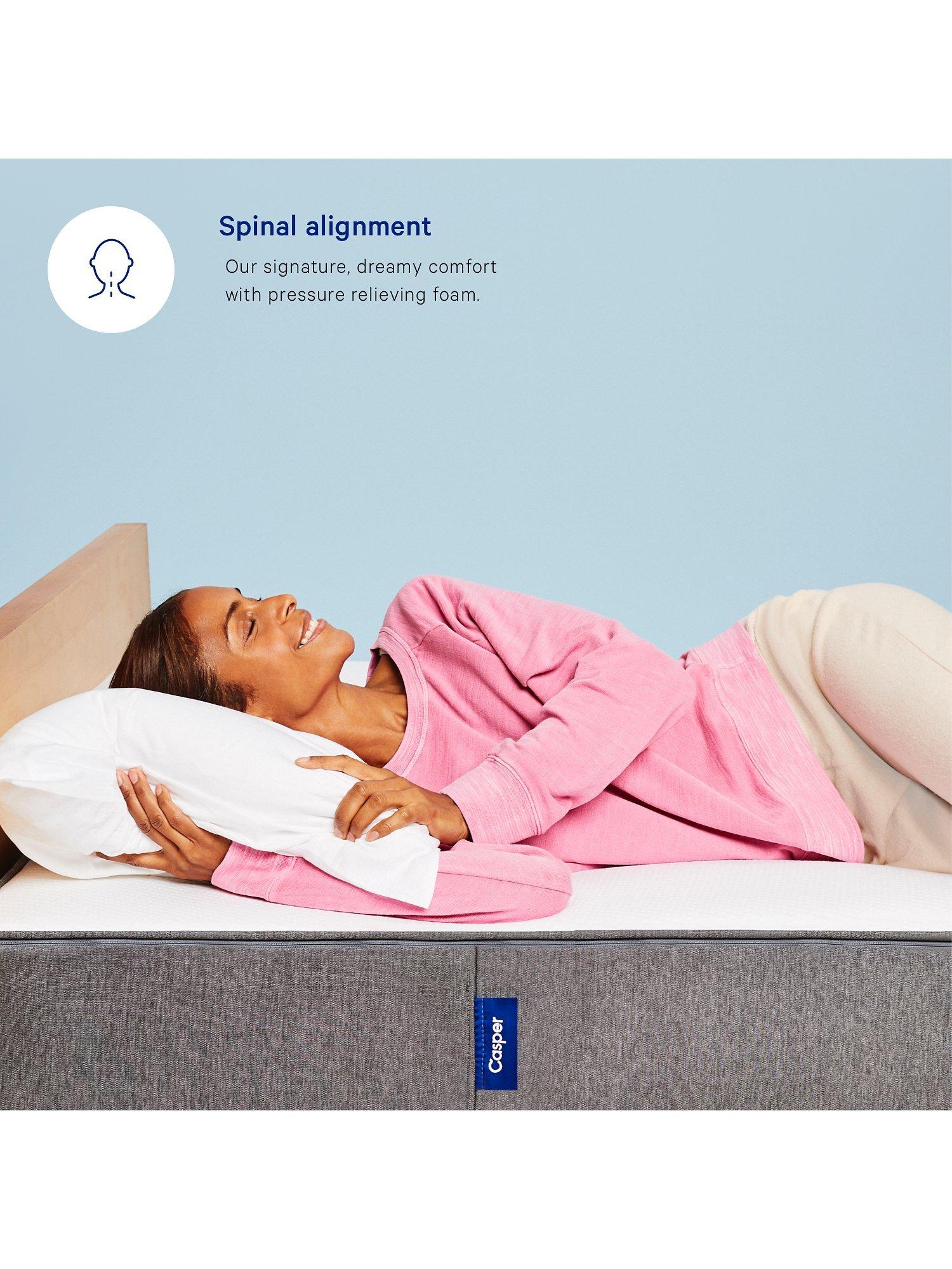 The Casper Mattress is designed with layers of pressure-relieving foam to ensure a balanced, breathable and comfortable experience throughout the night. This original, rolled model from Casper has a symmetric construction, with 5-zoned support in the base layer that helps to keep your spine aligned and support your shoulders and hips.