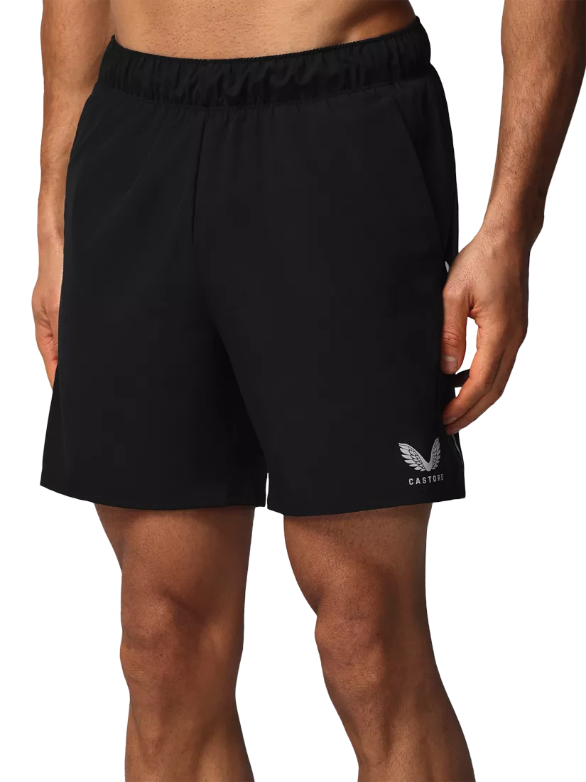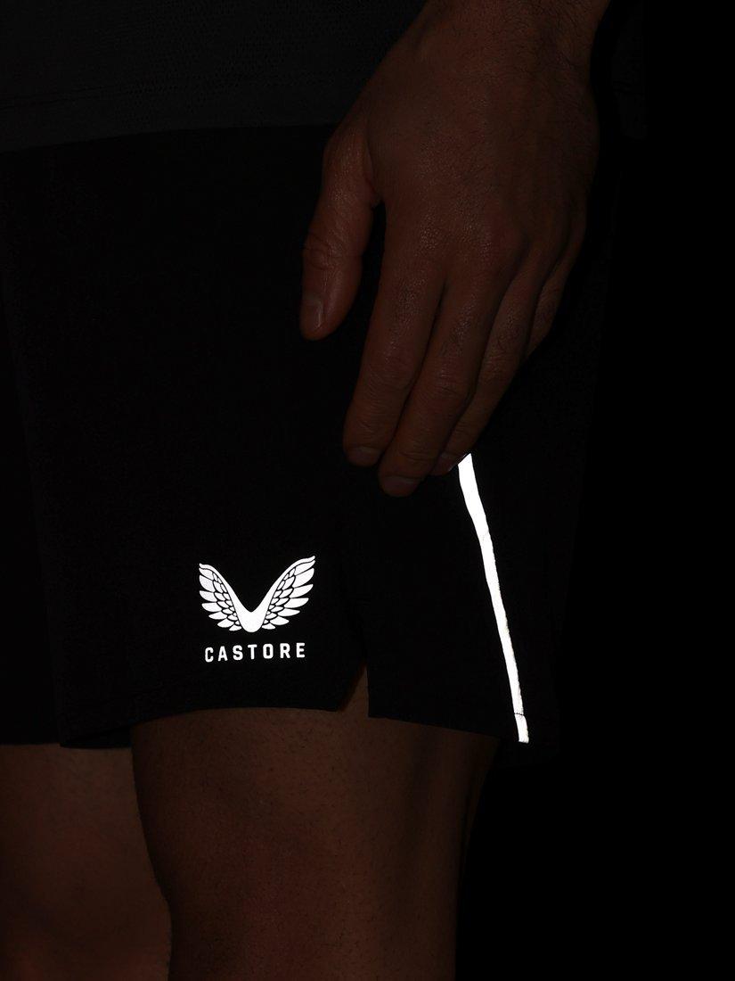 A regular fit, made from a lightweight woven stretch fabric with mesh side panels, they have a comfortable elasticated waistband with internal drawcords and branded aglets. Finished with a Castore logo at the left thigh and reflective tape and branding.