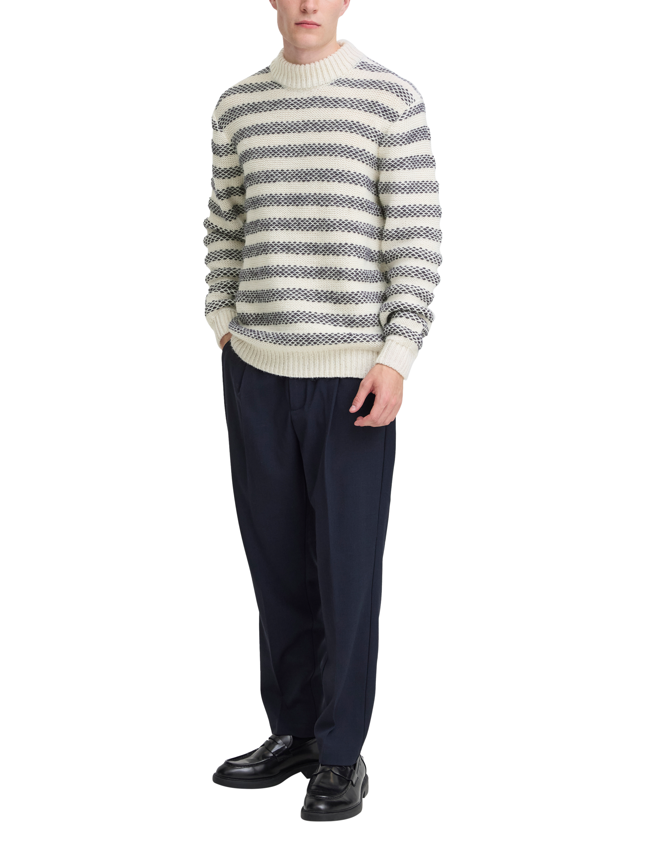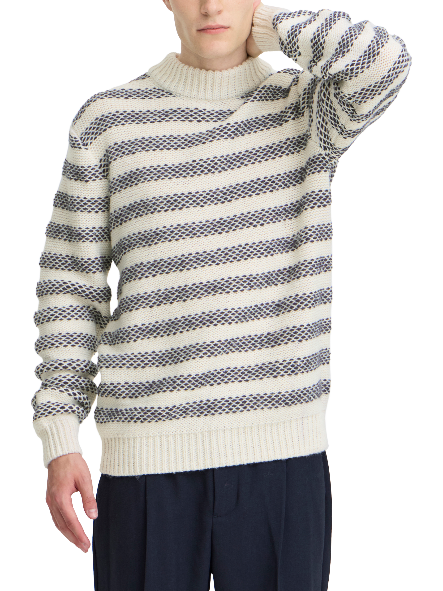 Making its way to your most-used drawer as the temperature cools, this crew neck jumper from Casual Friday is reworked with classic stripes