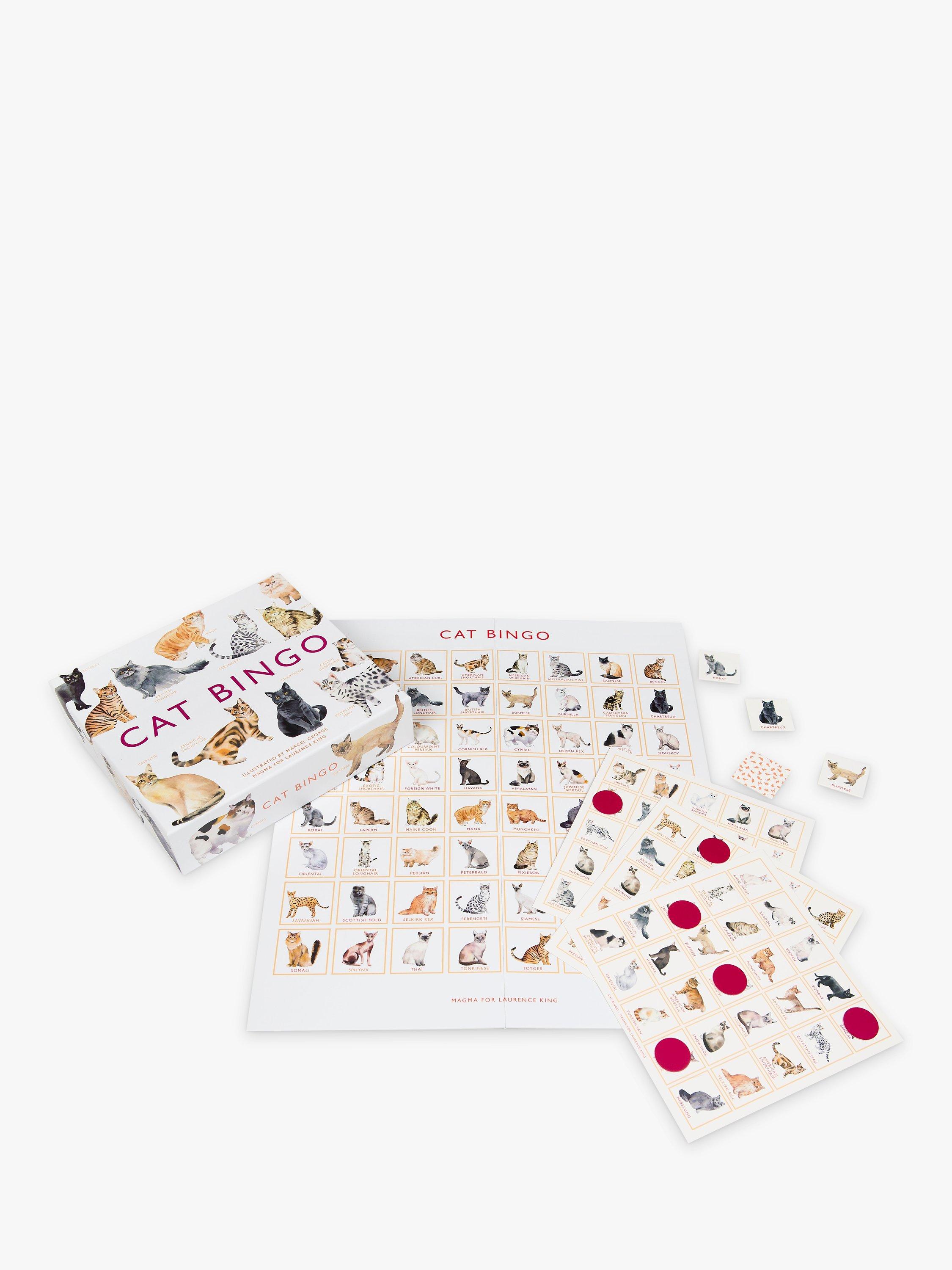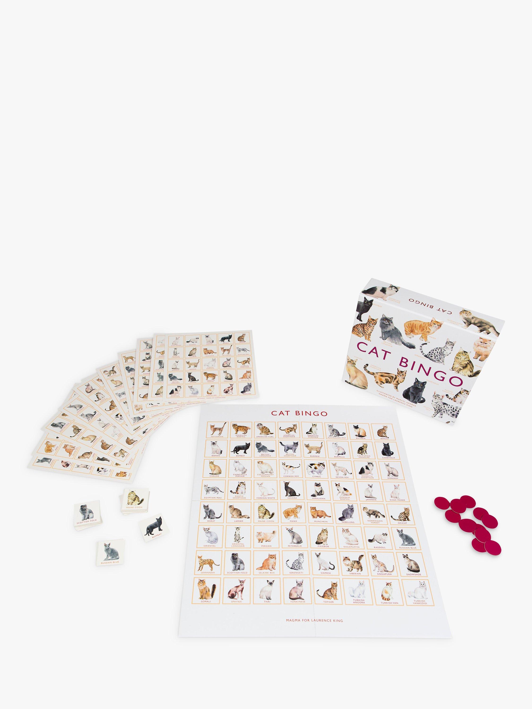 Contains 64 superbly illustrated cat tokens, one playing board, 12 bingo cards and brightly coloured counters for you to mark up your card. includes a leaflet with information on each of the cats included.