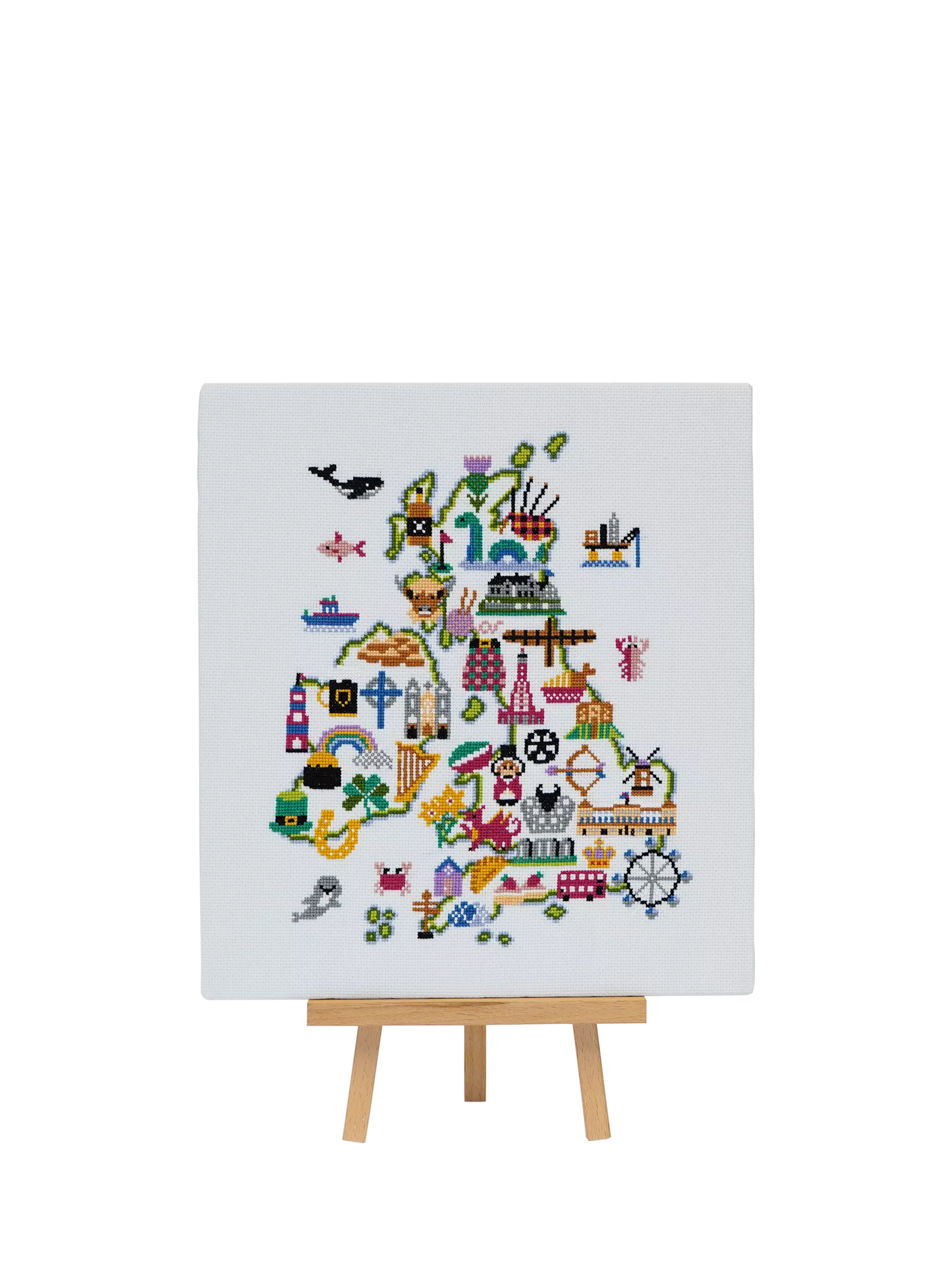 Come on an exciting adventure around the British Isles with this map themed cross stitch design.