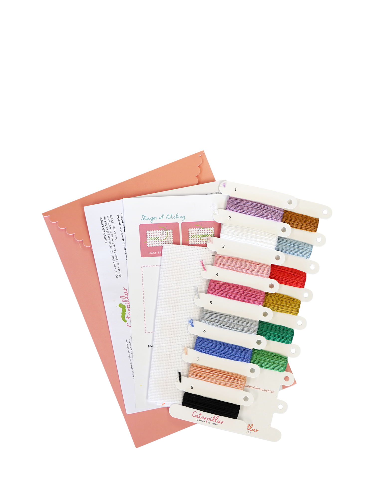 This beginner-friendly kit contains all the high-quality supplies you’ll need to get started on your cross stitching journey. Enjoy easy-to-follow instructions, a professionally printed A3 colour chart, finest DMC stranded cotton in 14 shades, white Zweigart 14 count aida fabric and a size 24 needle.