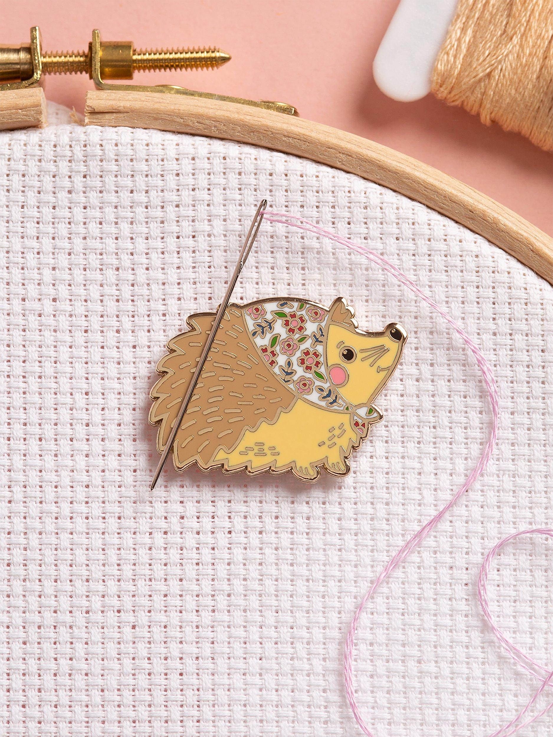An essential accessory for all cross stitchers, this cute hedgehog needle minder from Caterpillar Cross Stitch attaches to the front of your fabric with one super-strong magnet and another secured behind your fabric. Your needle is held safely on the top enamel piece ready to be used time and time again.