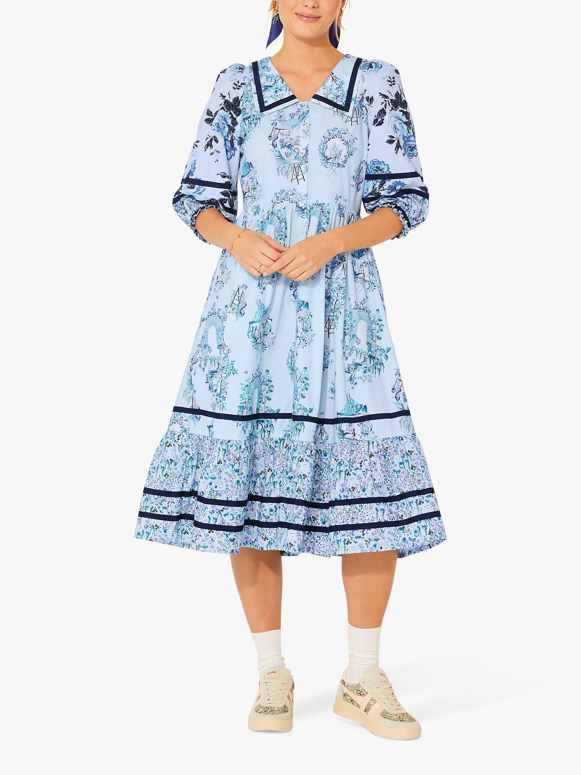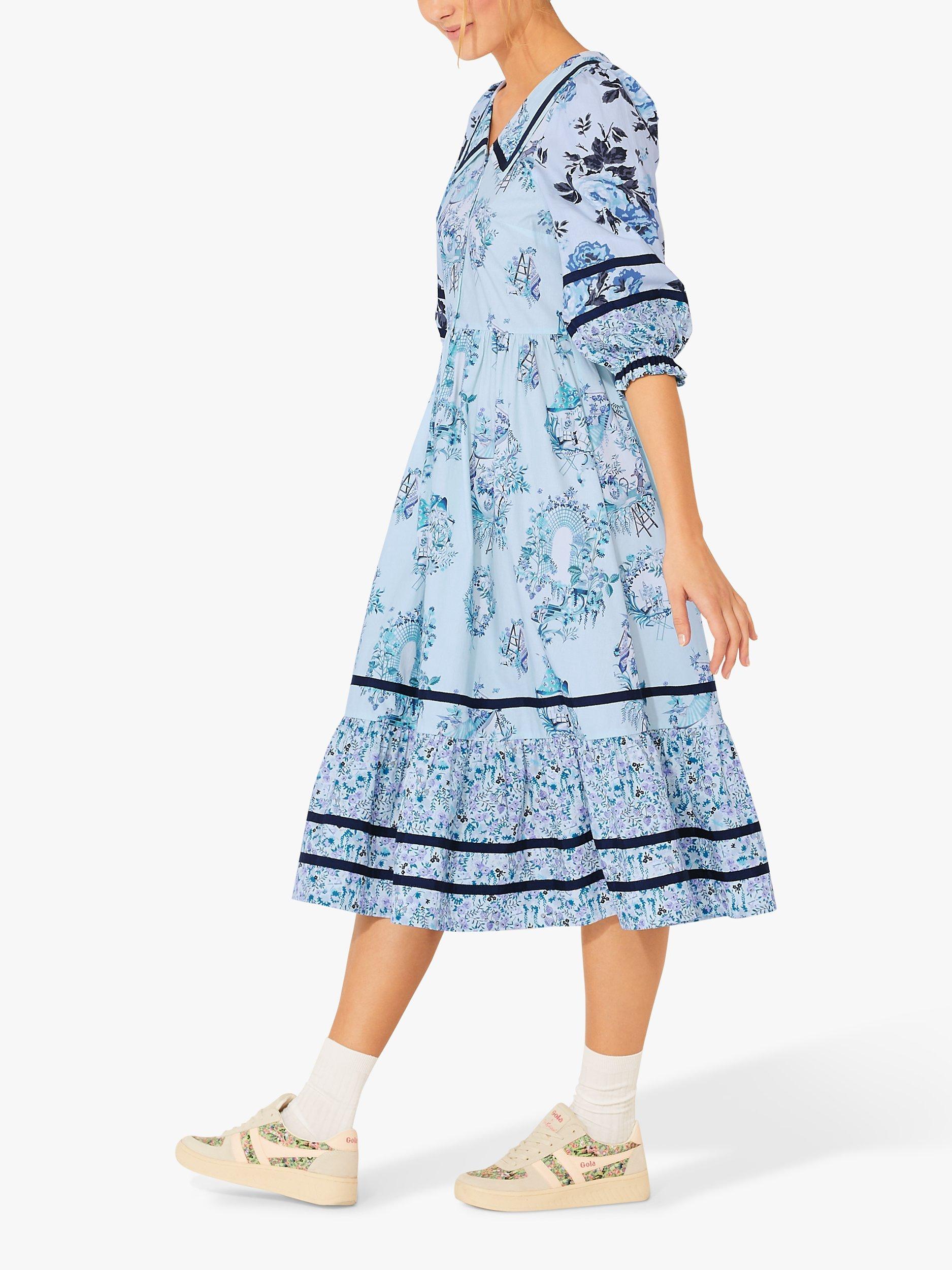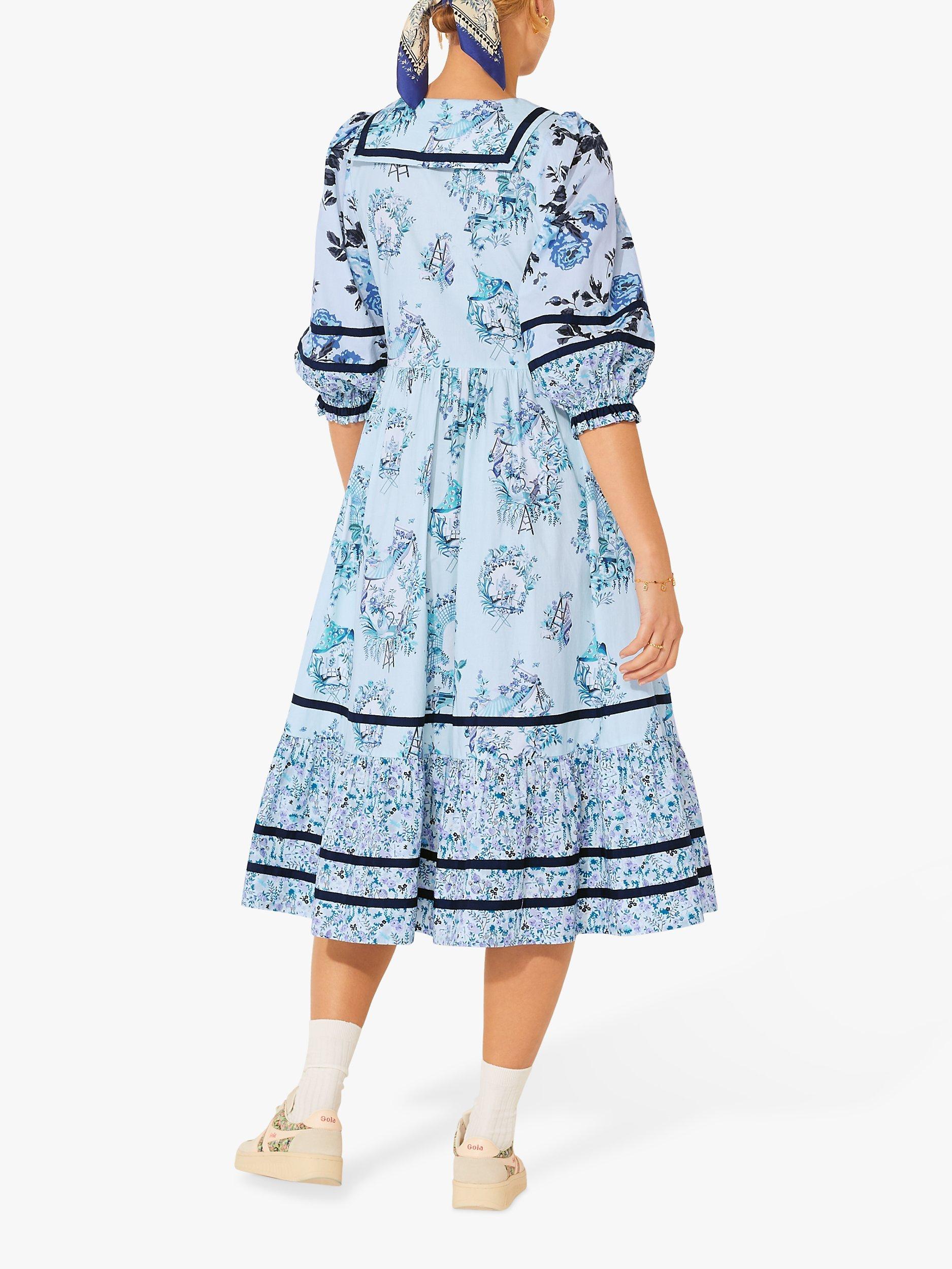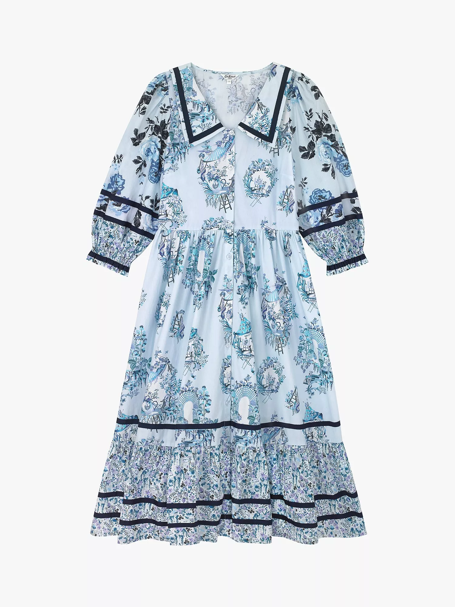Effortlessly flattering thanks to the fit and flare cut, this midi dress from Cath Kidston comes with a lightweight cotton composition. Smartened with a statement sailor collar neckline and three quarter length sleeves, this style draws the eye with a graphic print.