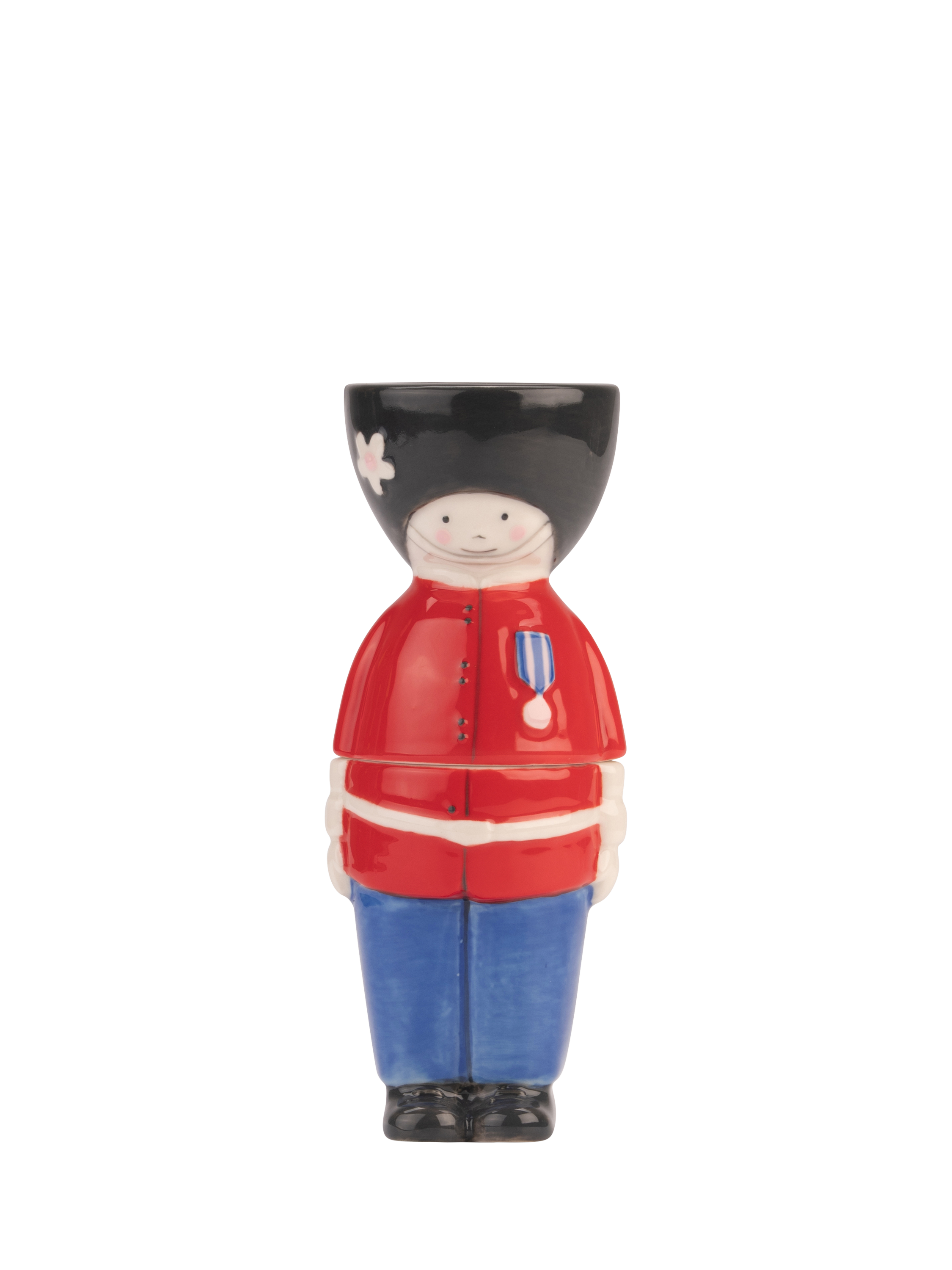 Start your day with a smile using this novelty stacking egg cup set featuring a stoneware London Guard. Compact and space-saving with charming hand-painted details, it's boxed and ready to gift as a delightful collectable for any breakfast table.