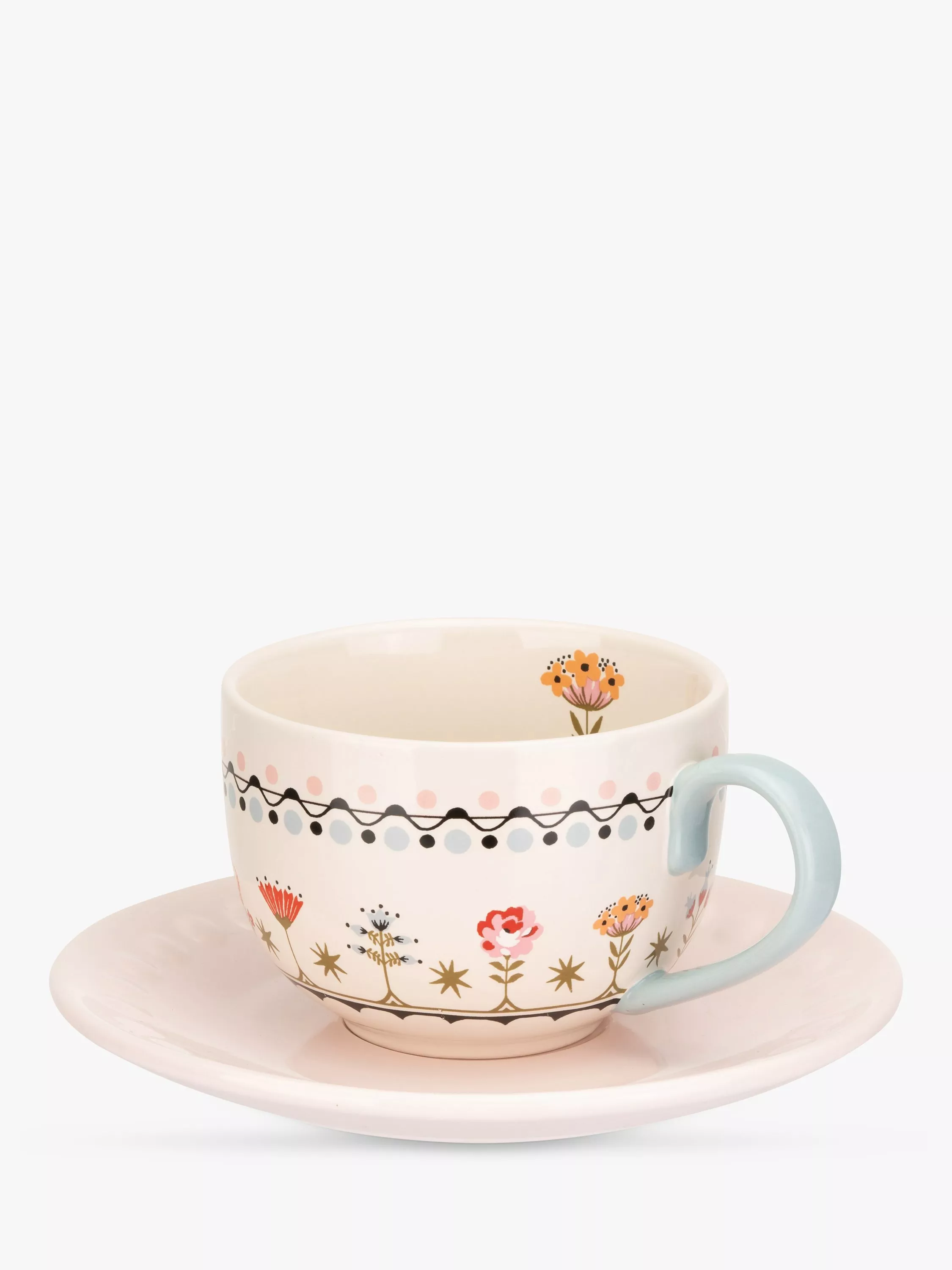 Colourful florals decorate this Cath Kidston cup and saucer set. Made of stoneware, it's dishwasher and microwave safe for everyday use. Created with delicately fun florals inspired by hand-painted designs from the Cath Kidston archives. Team with the matching teapot, plates and mugs.