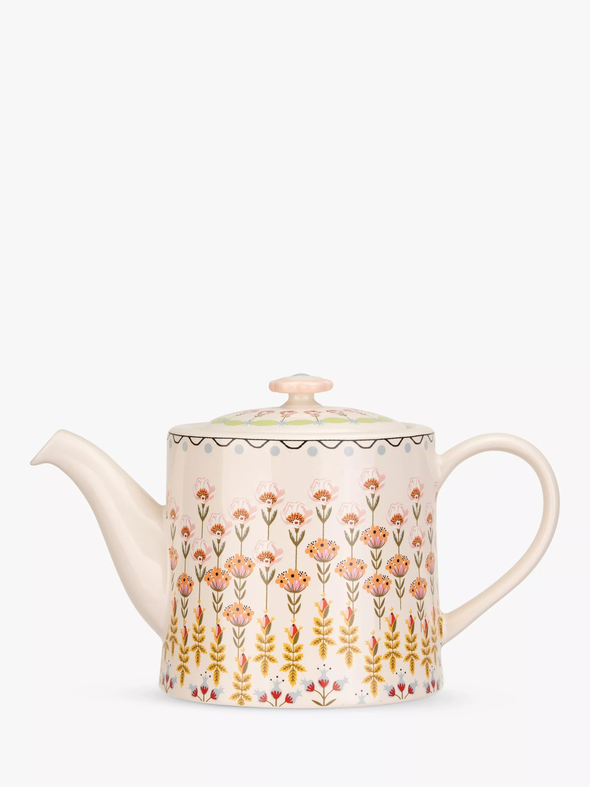 Colourful florals decorate this Cath Kidston teapot, with a beautifully shaped lid and handle and generous capacity for those extra-long catch-ups. Made of stoneware, it's dishwasher-safe for everyday use. Created with delicately fun florals inspired by hand-painted designs from the Cath Kidston archives. Team with the matching cup and saucer, plates and mugs.