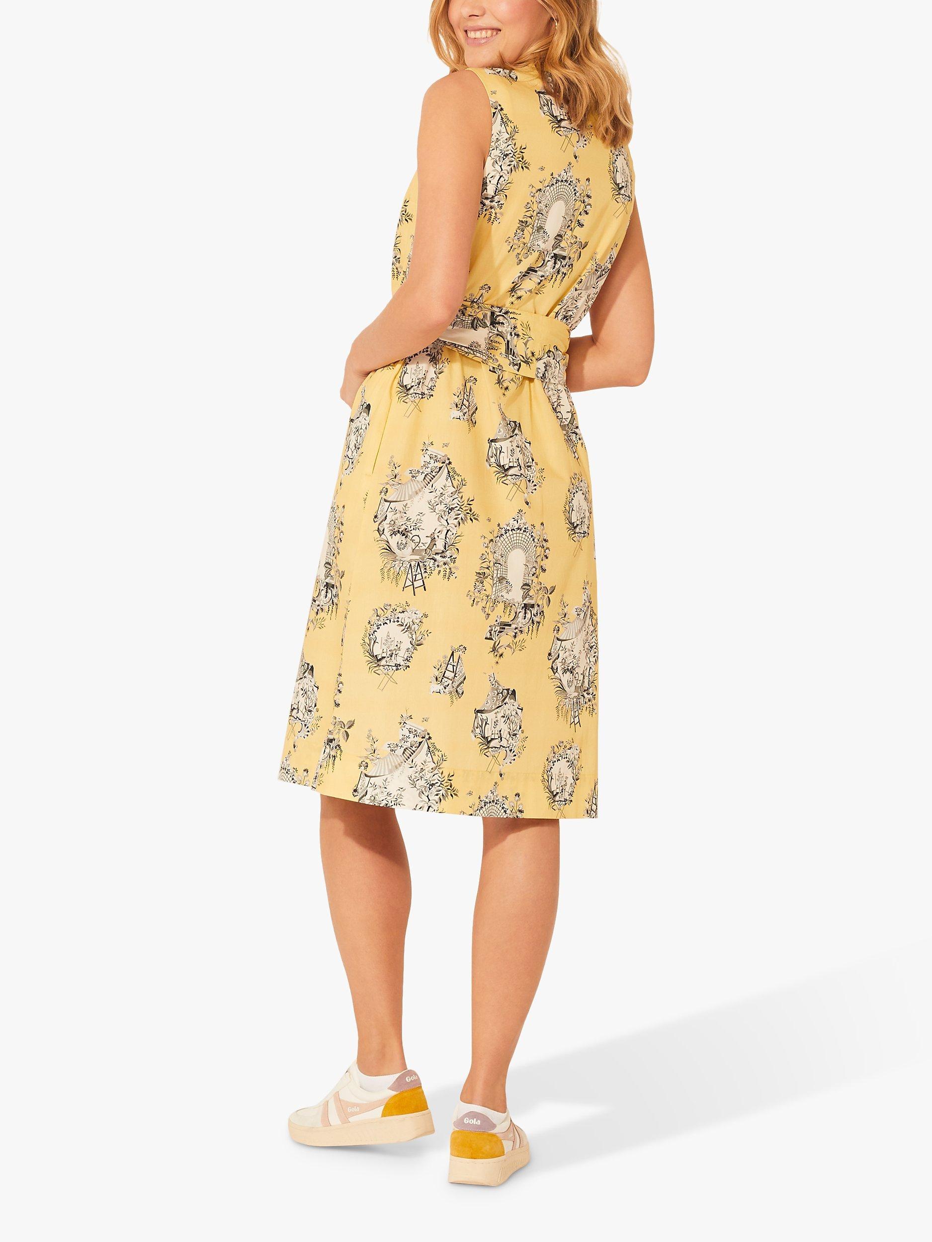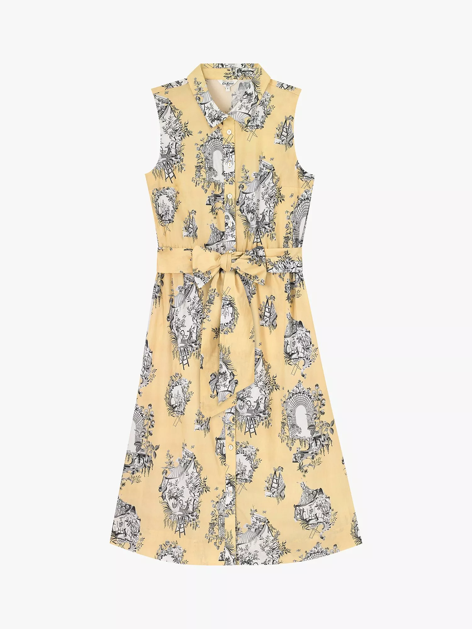 An instant classic thanks to its shirt styling, this knee length dress from Cath Kidston is rendered from pure cotton. Topped with a collar, this sleeveless style has an eye-catching, graphic print.