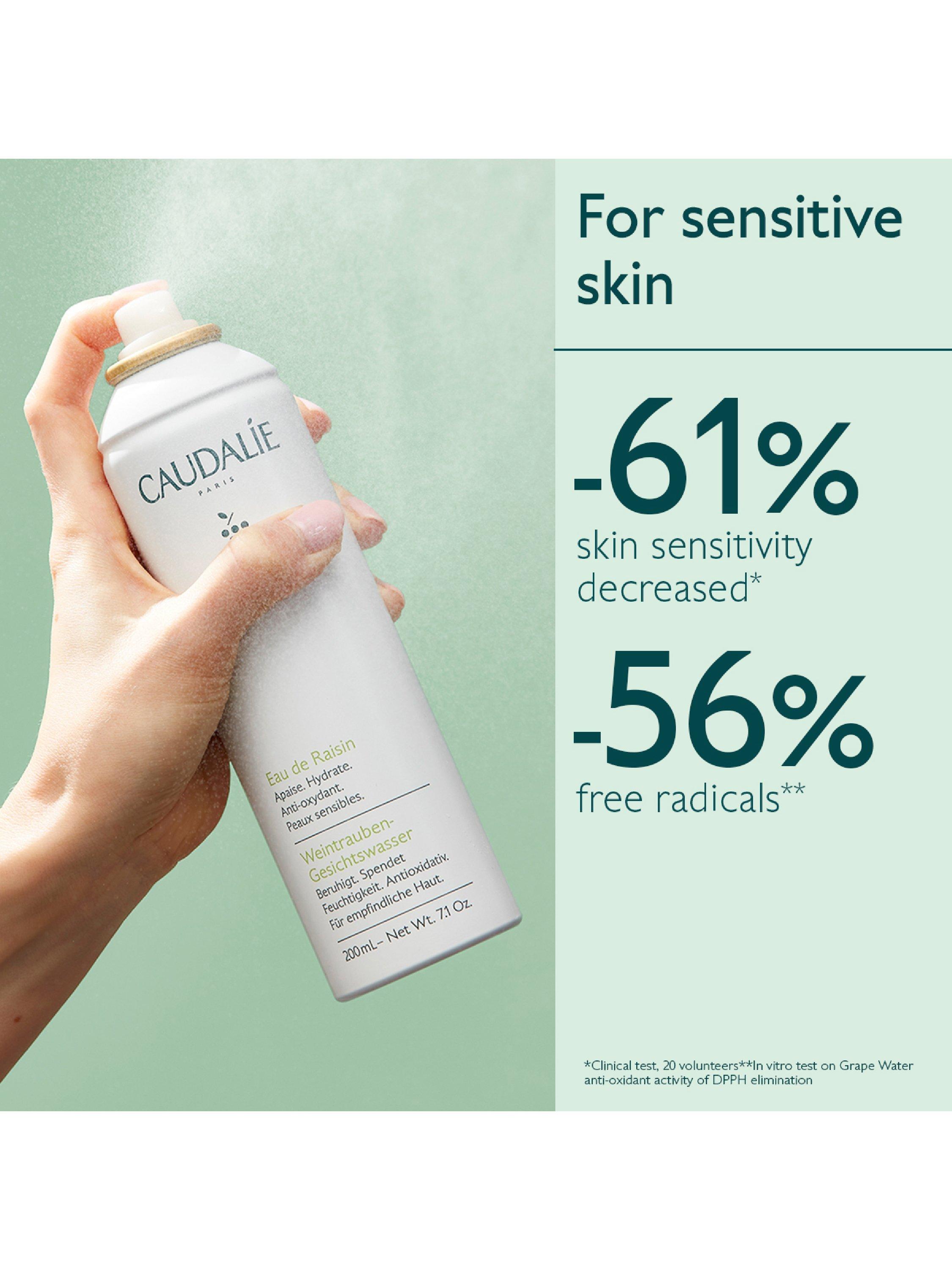 Hydrate, soothe and refresh skin in just a few spritz’ thanks to Caudalie’s iconic Grape Water. Expertly formulated with 100% natural organic grape water, it is prebiotic and rich in both minerals and antioxidants to help increase moisture, rebalance the skin’s microbiota and contribute to overall skin health. Added Willow Bark Extract that helps to conserve and restore the complexion. Easy-to-use and effective over makeup, it’s great for those on-the-go as a quick pick-me-up.