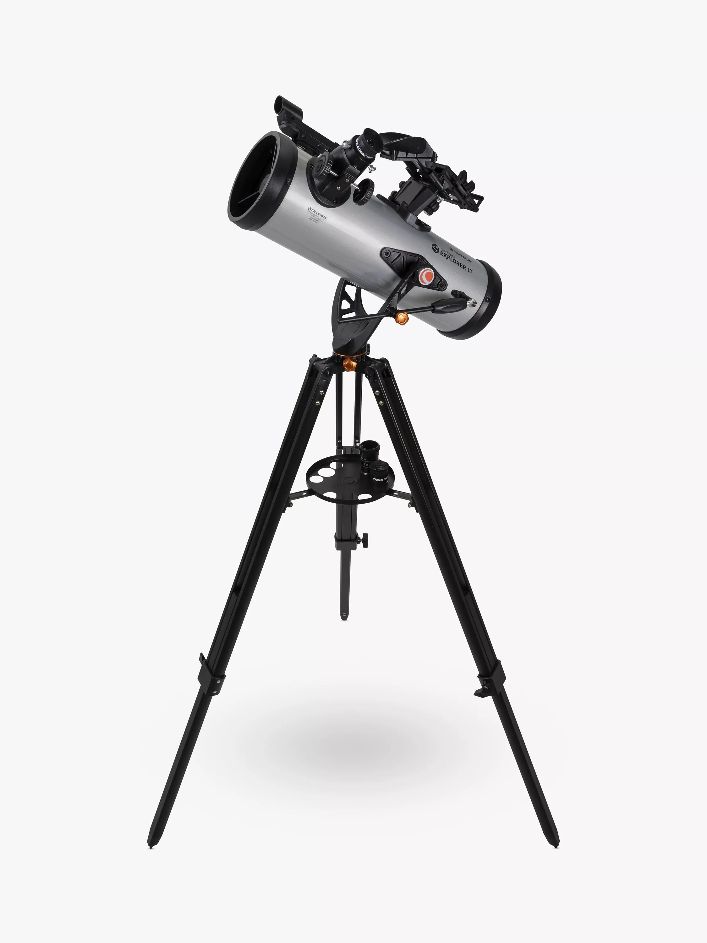 25mm and 10mm eyepieces, 2x Barlow Lens, StarSense smartphone dock, a red dot finderscope (in case you want to use the telescope without your phone), and a full-height tripod.