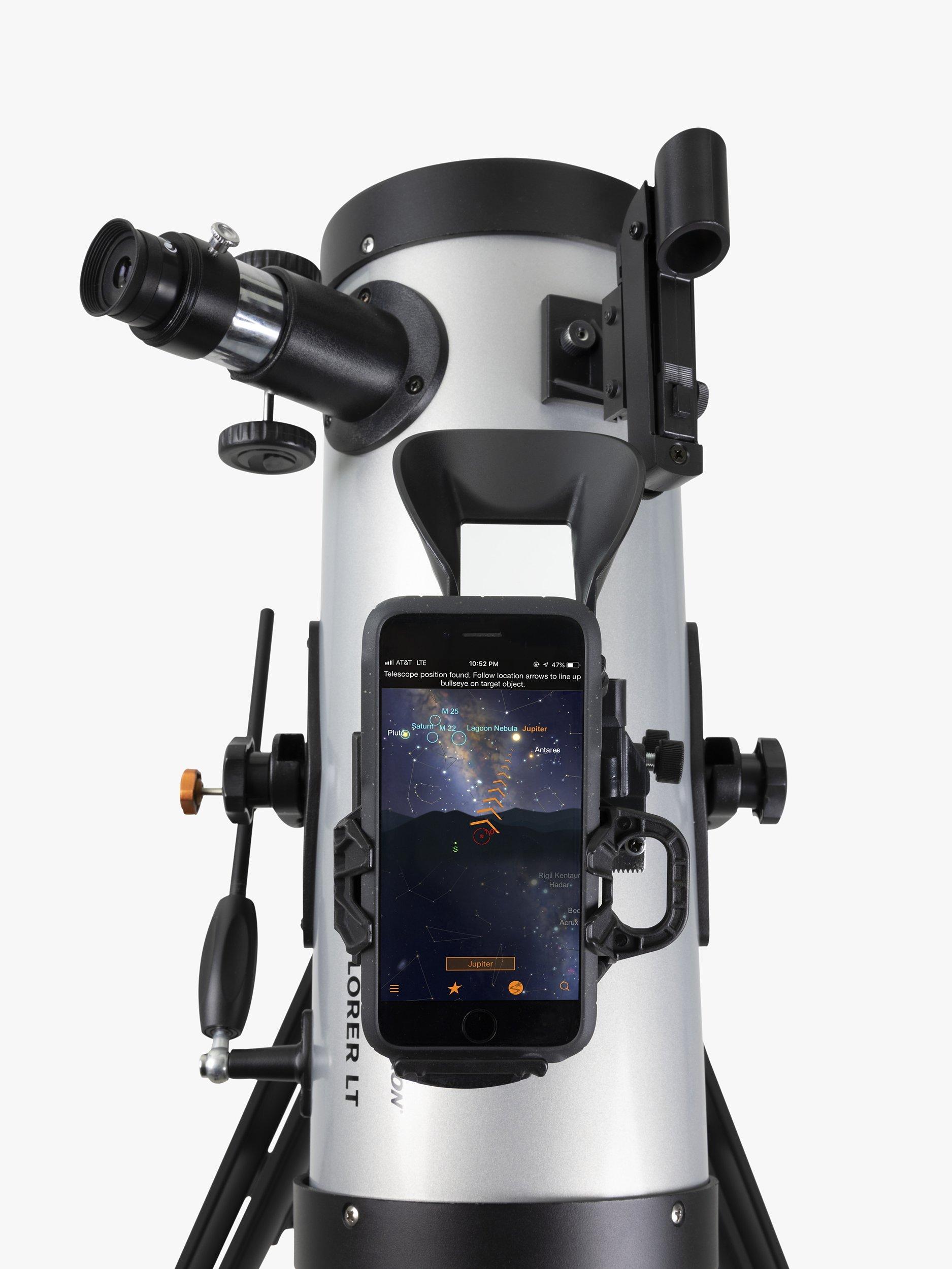 StarSense sky recognition technology uses your smart phone to analyse star patterns overhead and calculate its position in real time. The StarSense Explorer app (available on iOS and Android) automatically generates a list of objects currently visible. You can view planets, brighter nebulae and galaxies, star clusters, and double stars from the city. Or take your telescope to darker skies to view faint, deep sky objects.