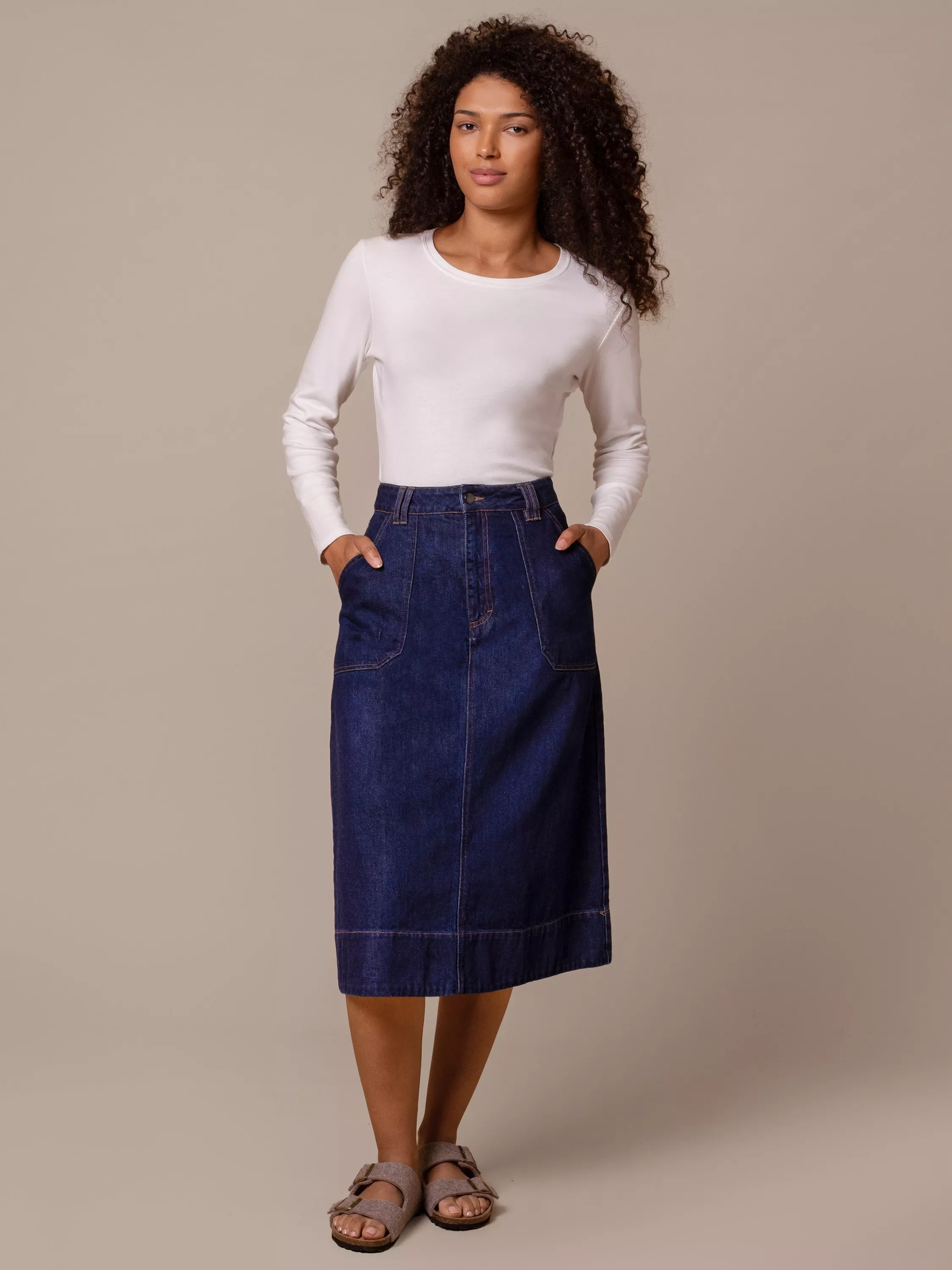 Celtic & Co.A-Line Denim Midi Skirt, Blue Rinse