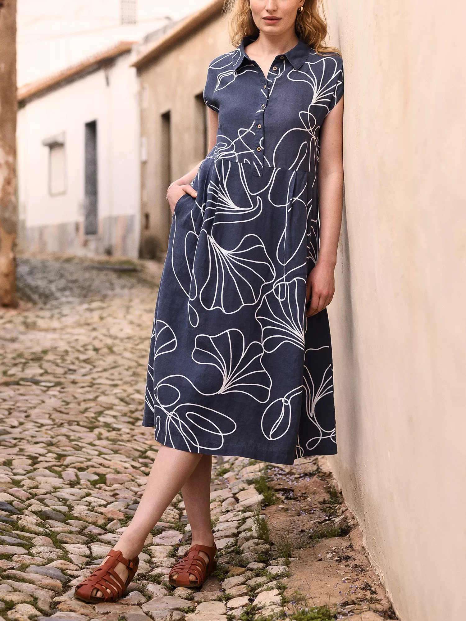 Designed with a collared half-placket neckline, this midi dress has an easy fit complemented by a gently flared skirt for a naturally flattering shape. The grown-on sleeves add an effortless element to this timeless piece.