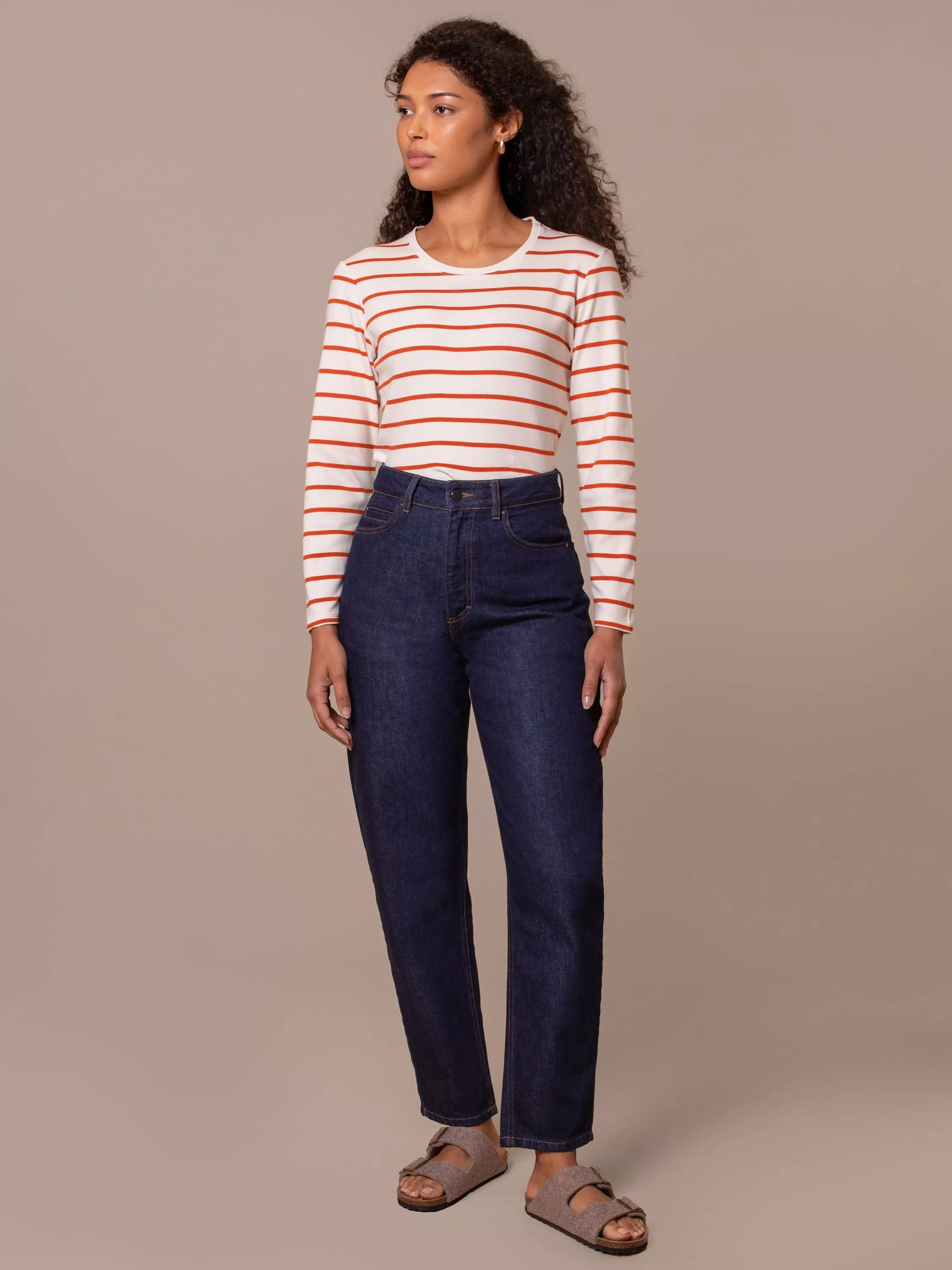 Cut from pure cotton, these barrel-leg jeans offer a relaxed silhouette with a modern ankle-grazing length. Featuring a button and fly fastening, they deliver everyday comfort with a structured feel. Finished with classic denim detailing for versatile wear.