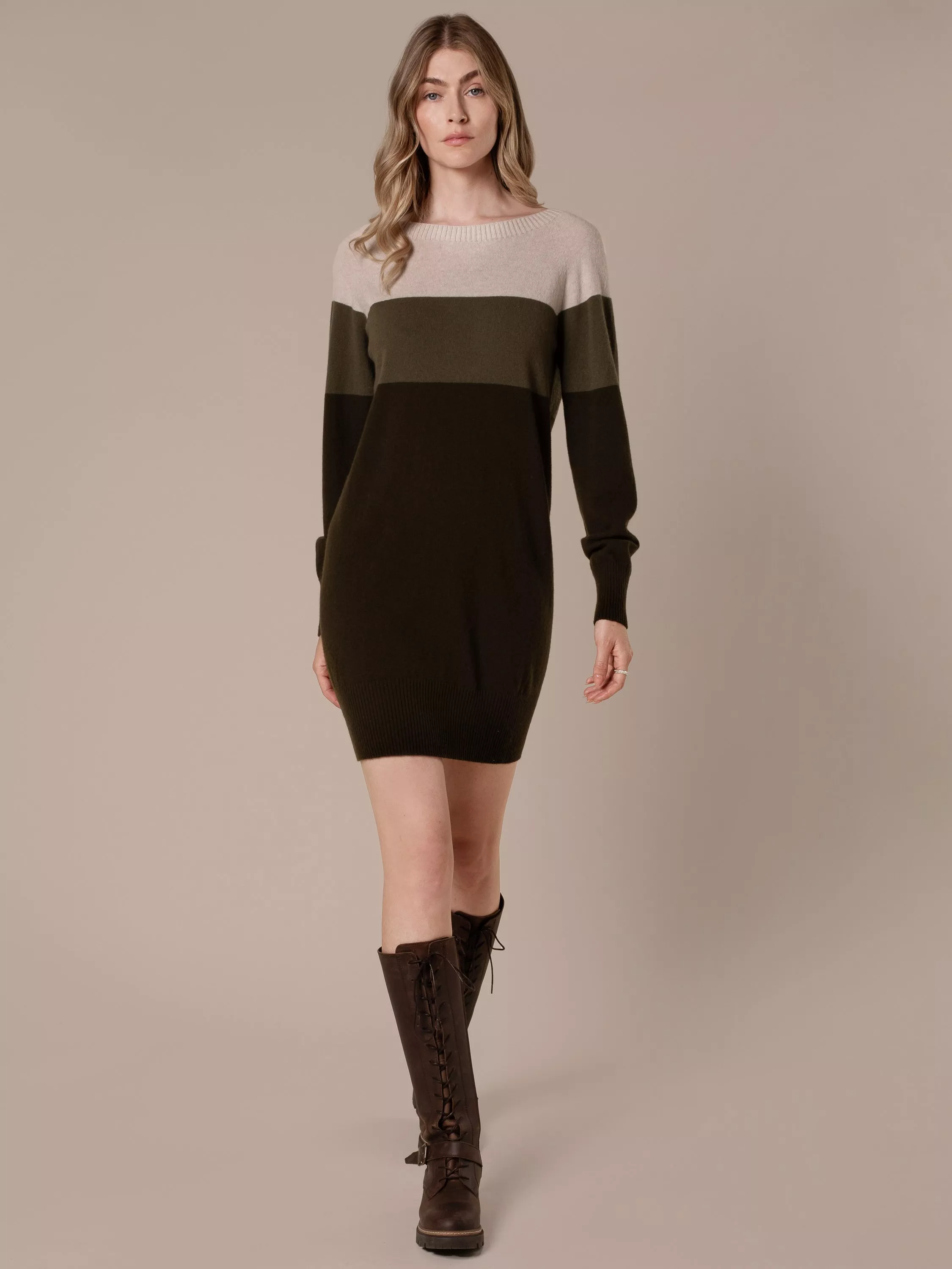 Banish cold days in style. This long-sleeved pure wool mini dress from Celtic & Co. draws the eye with bold blocks of colour.