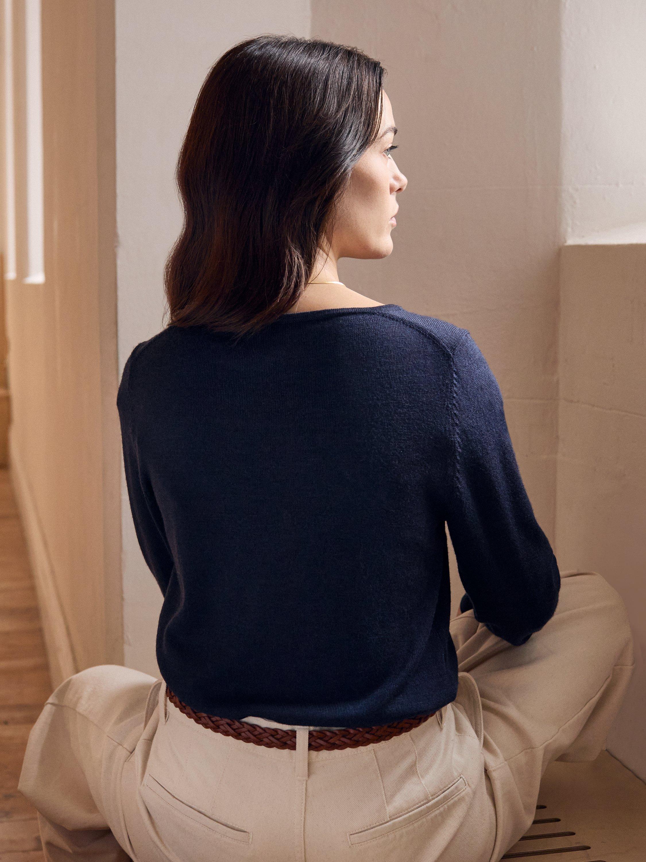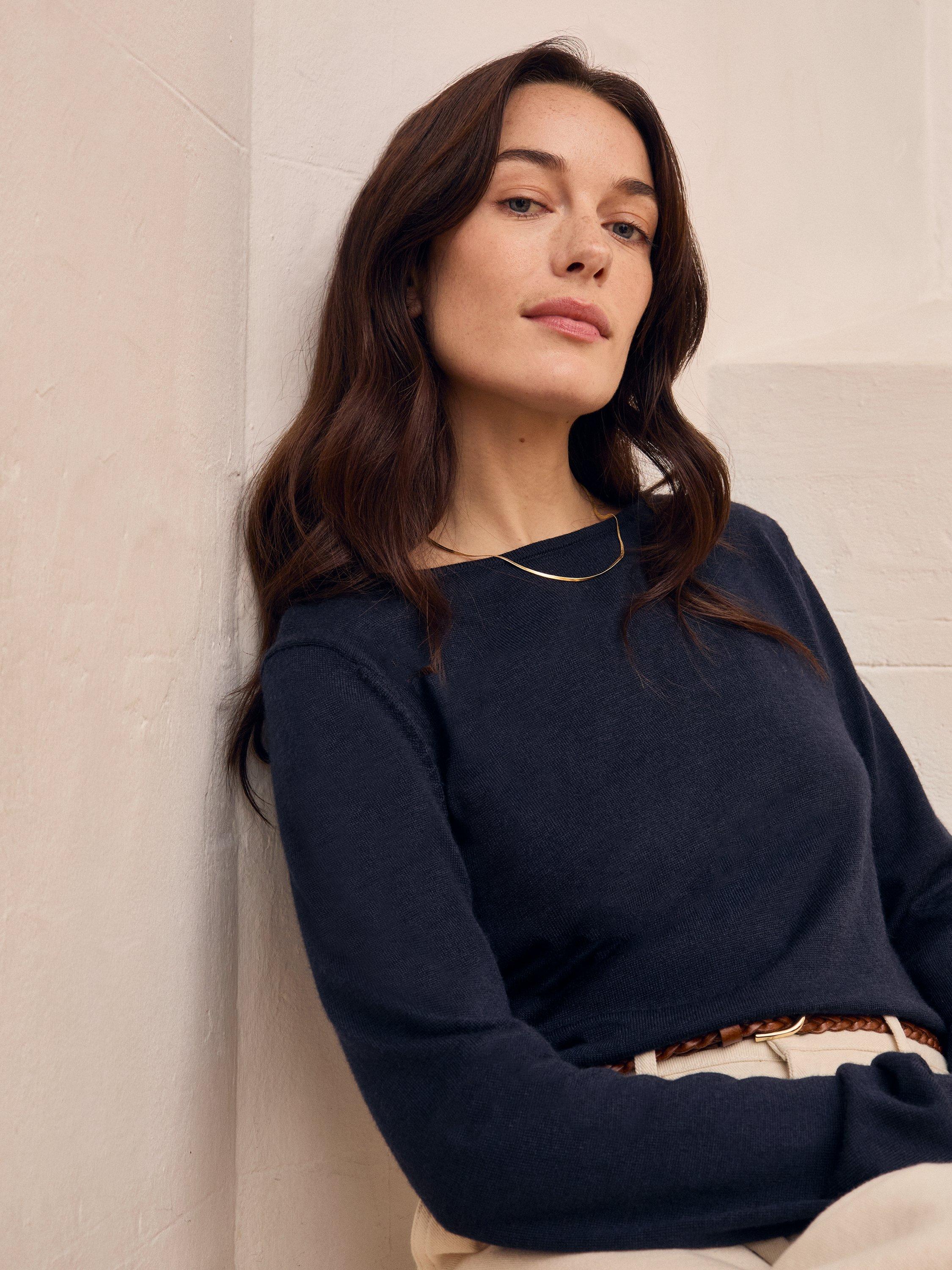 With an elegant boat neckline and neat cut, classic look, this jumper is ideal for everyday wear. Made in Ultrafine Merino wool which helps keep the creases at bay, promote breathability in warmer conditions and generate natural warmth if it's chilly, this jumper provides versatile appeal for all seasons.