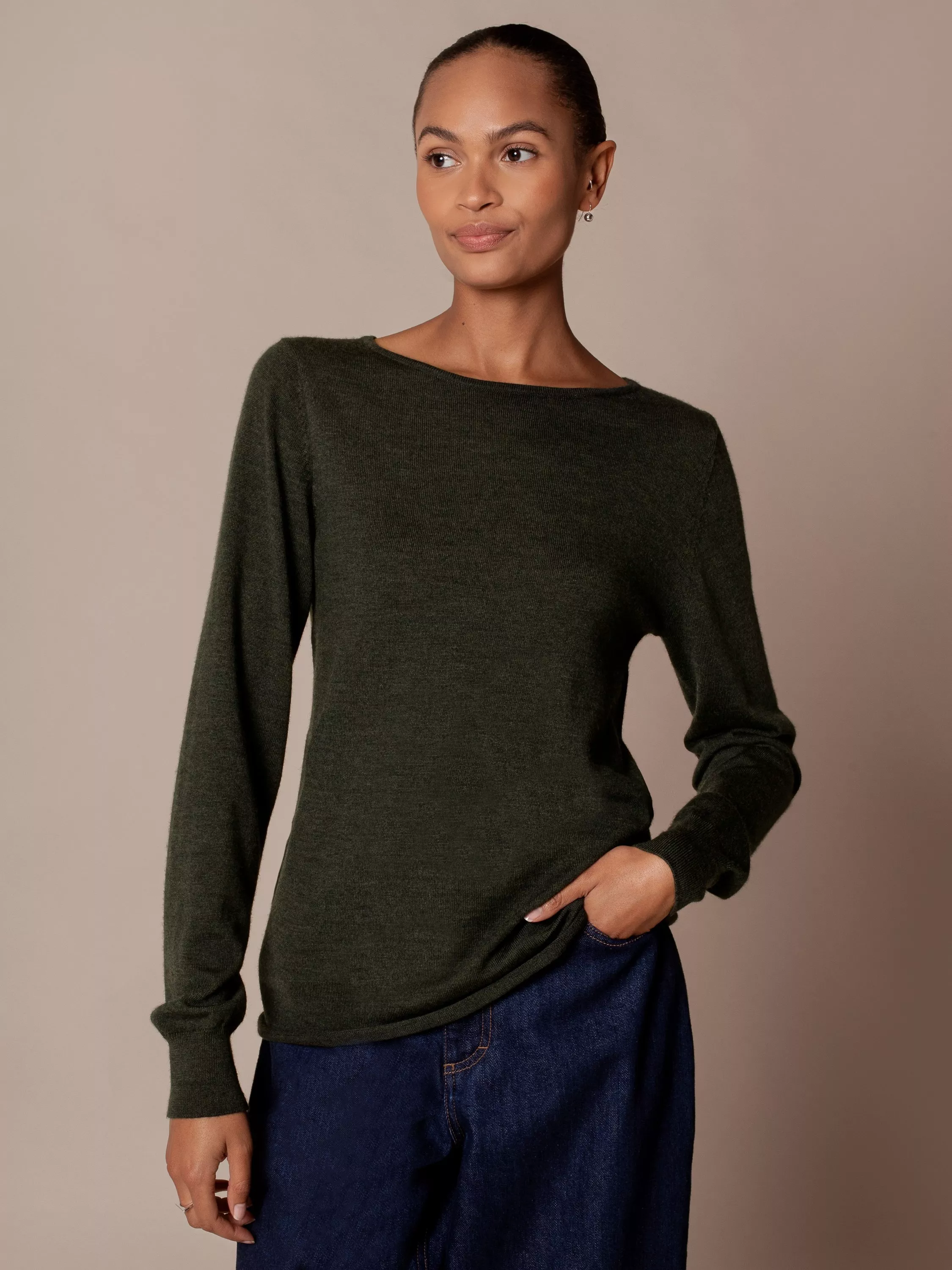With an elegant boat neckline and neat cut, classic look, this jumper is ideal for everyday wear. Made in Ultrafine Merino wool which helps keep the creases at bay, promote breathability in warmer conditions and generate natural warmth if it's chilly, this jumper provides versatile appeal for all seasons.