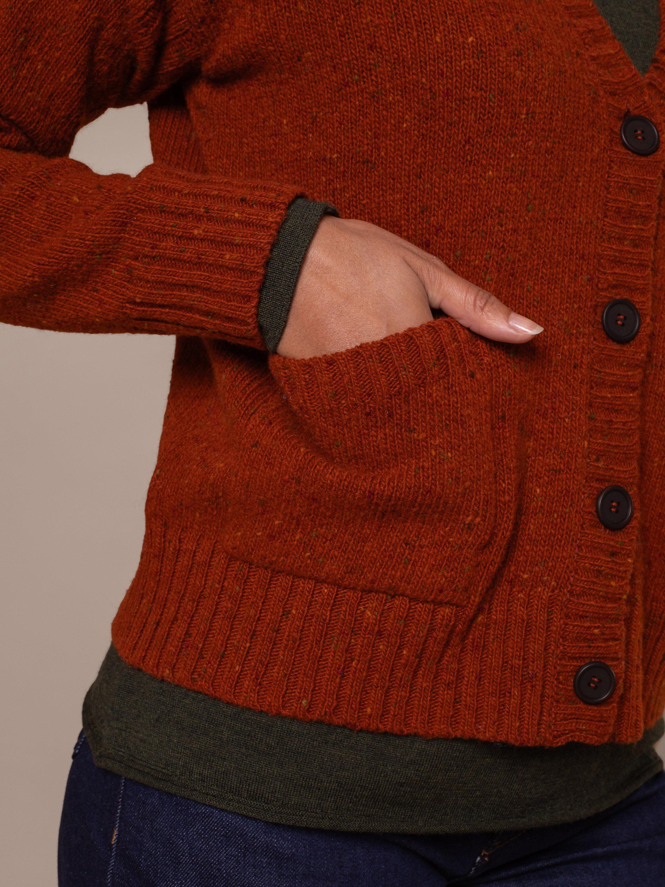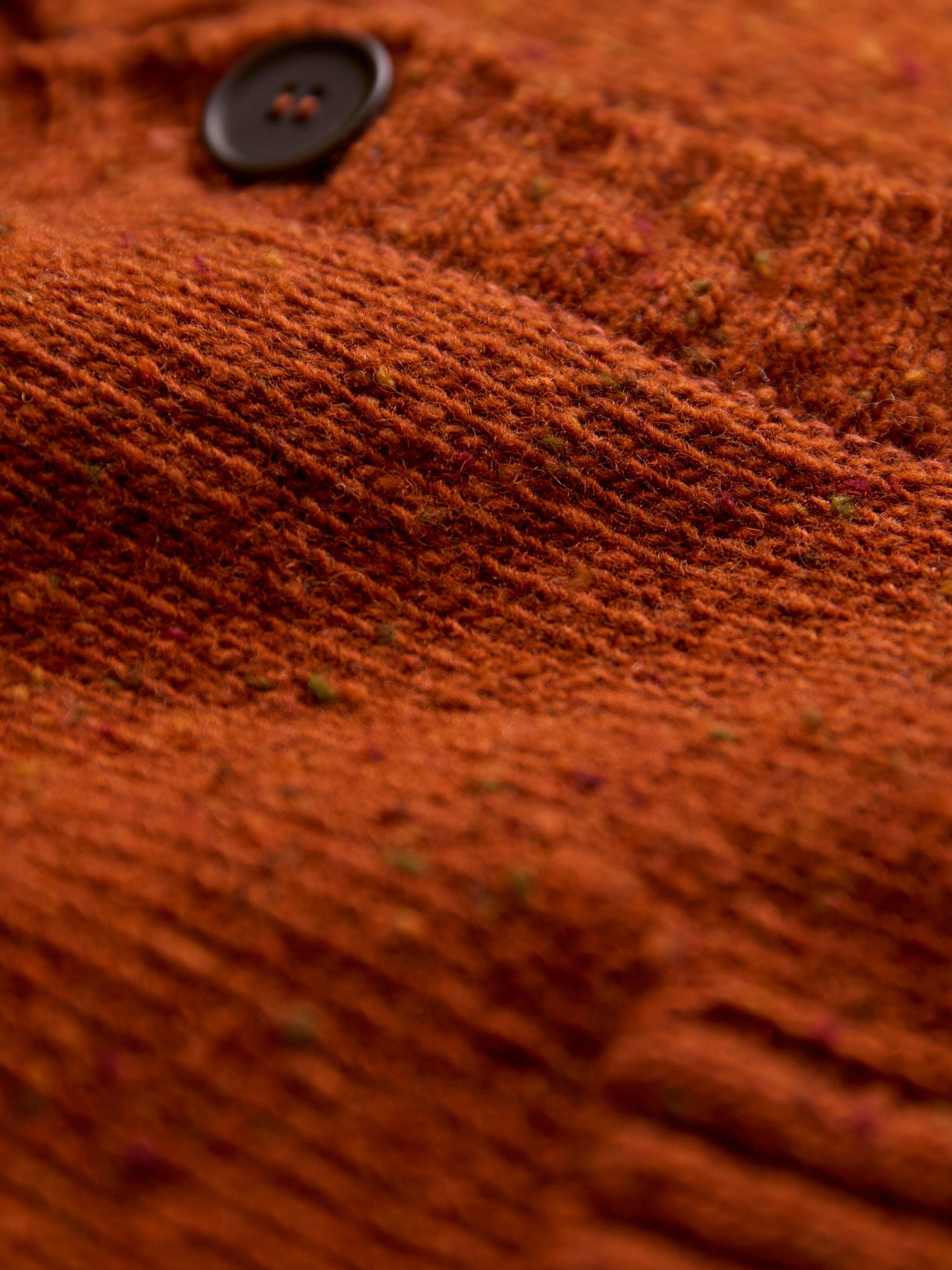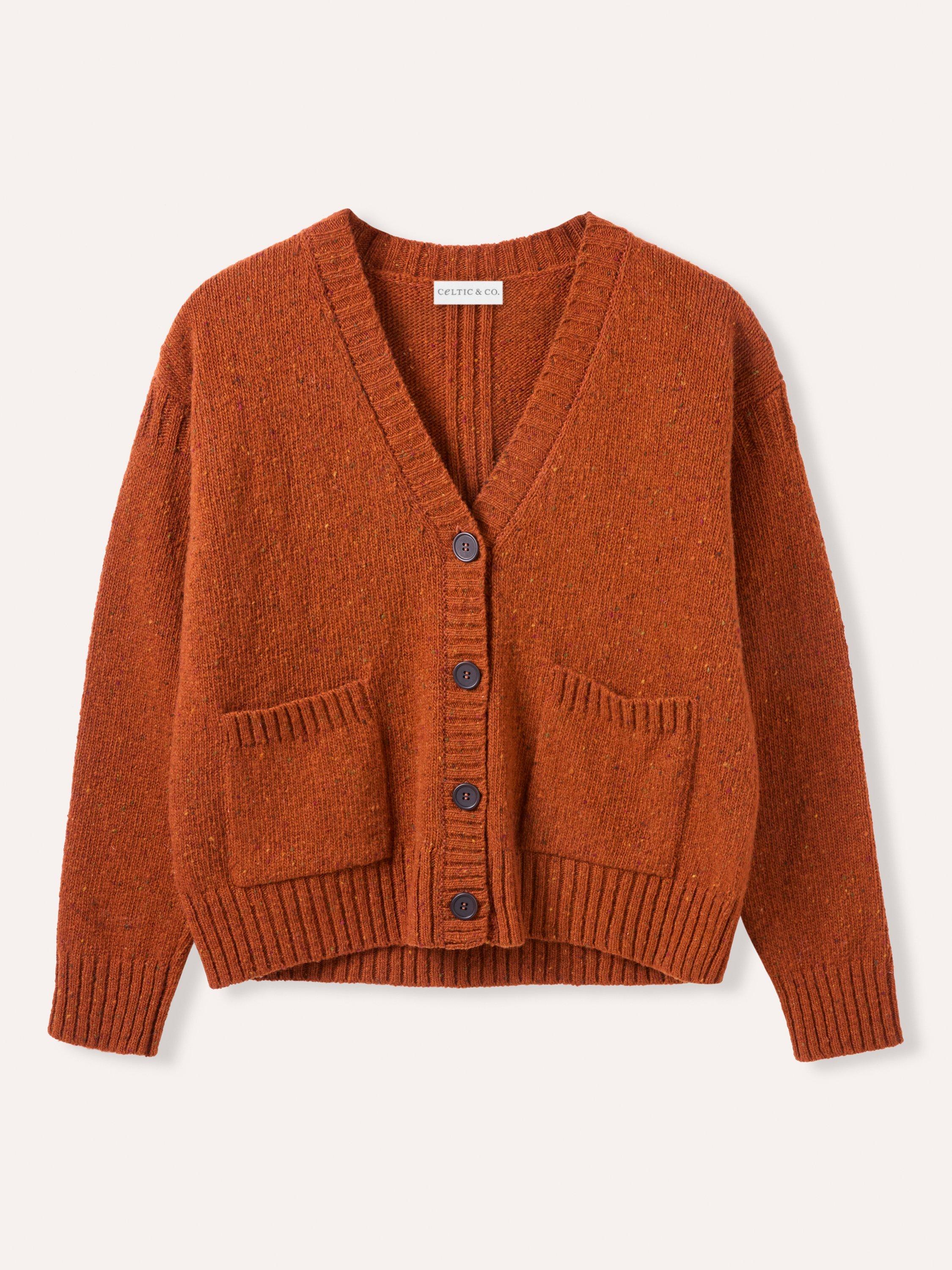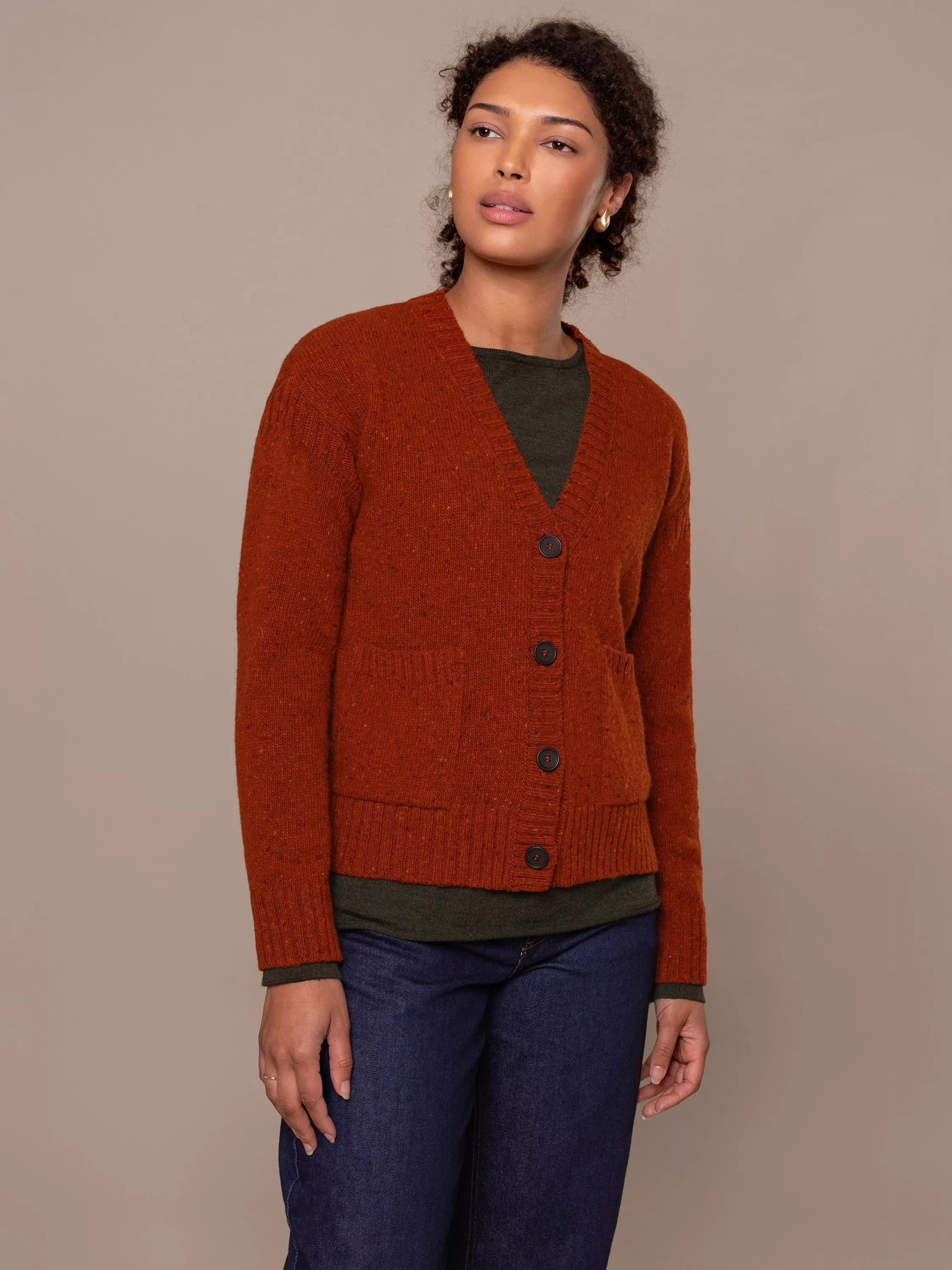 A firm favourite. V-neckline with ribbed placket cardigan in a boxy fit with a shorter length for a playful touch. The flecked yarn gives a luxe feel to this timeless cardigan.