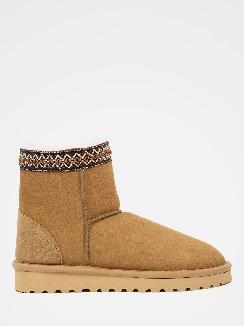 Introducing the Braid Trim Sheepskin Shortie Boot. Crafted with a sheepskin upper, Celtic & Co. has reworked one of its archive styles in a shorter length for a modern look. With a sheepskin insole and contrast braid trim, the boot offers comfort and character.