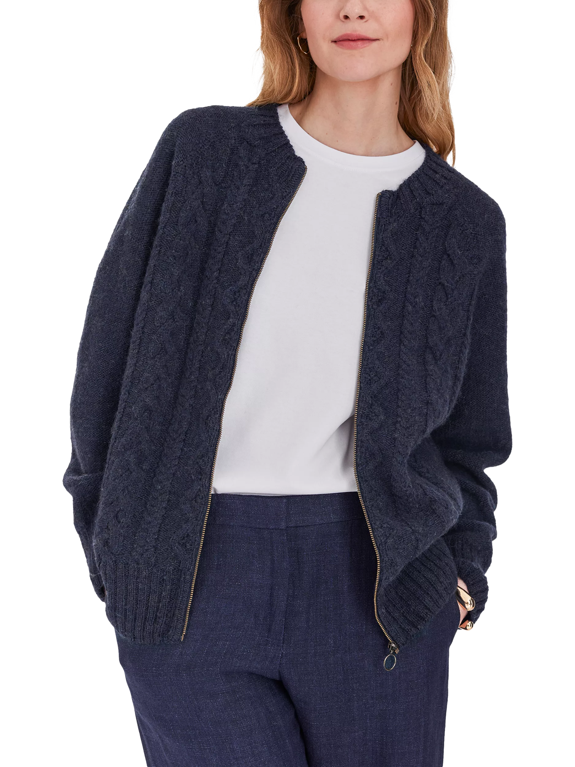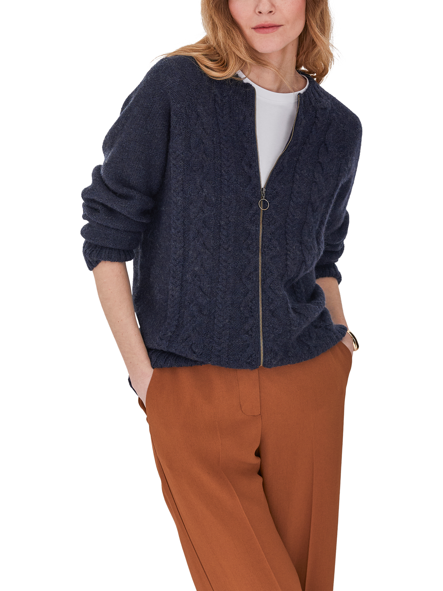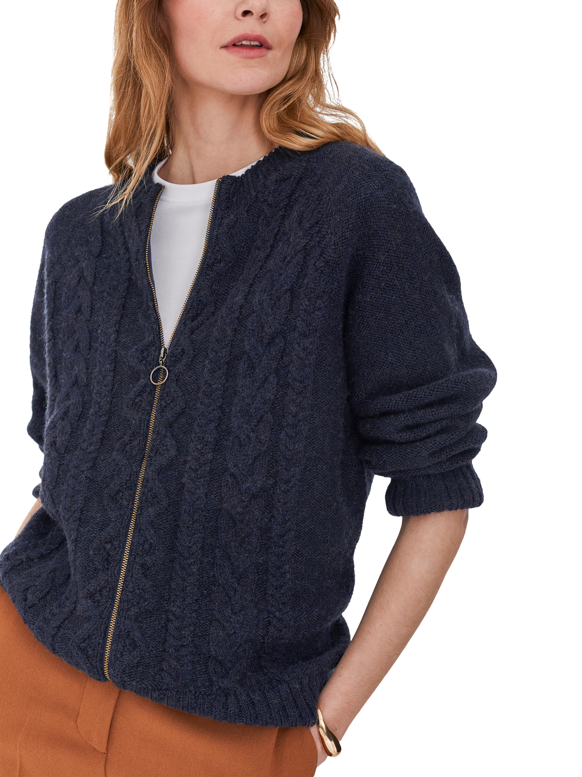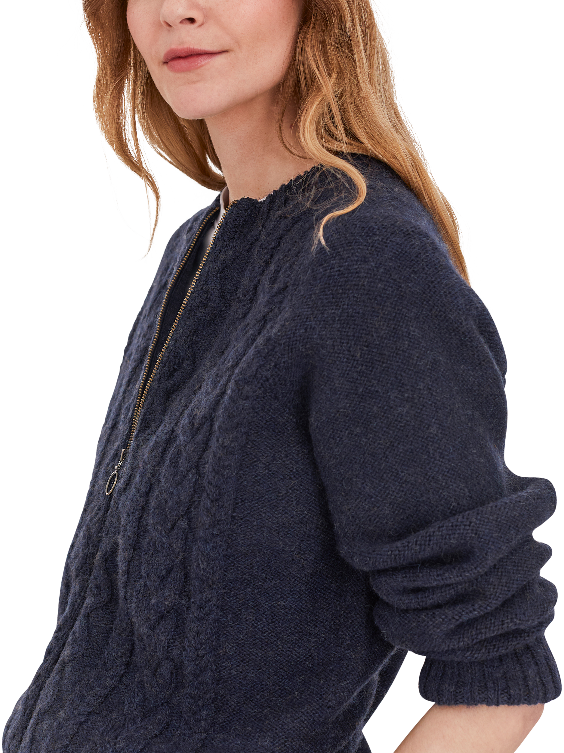 Celtic & Co. are proud to say that from farm to factory, their Cable Zip Cardigan is produced entirely in Britain! The colour way of this cardigan is totally natural as no dyestuffs were used in the process of creating the yarn. Natural fibres allow your skin to breathe whilst keeping you warm in winter. Details include cabling running down the body, a crew neck, ribbed cuffs, collar and hem and a metal zip down the centre.