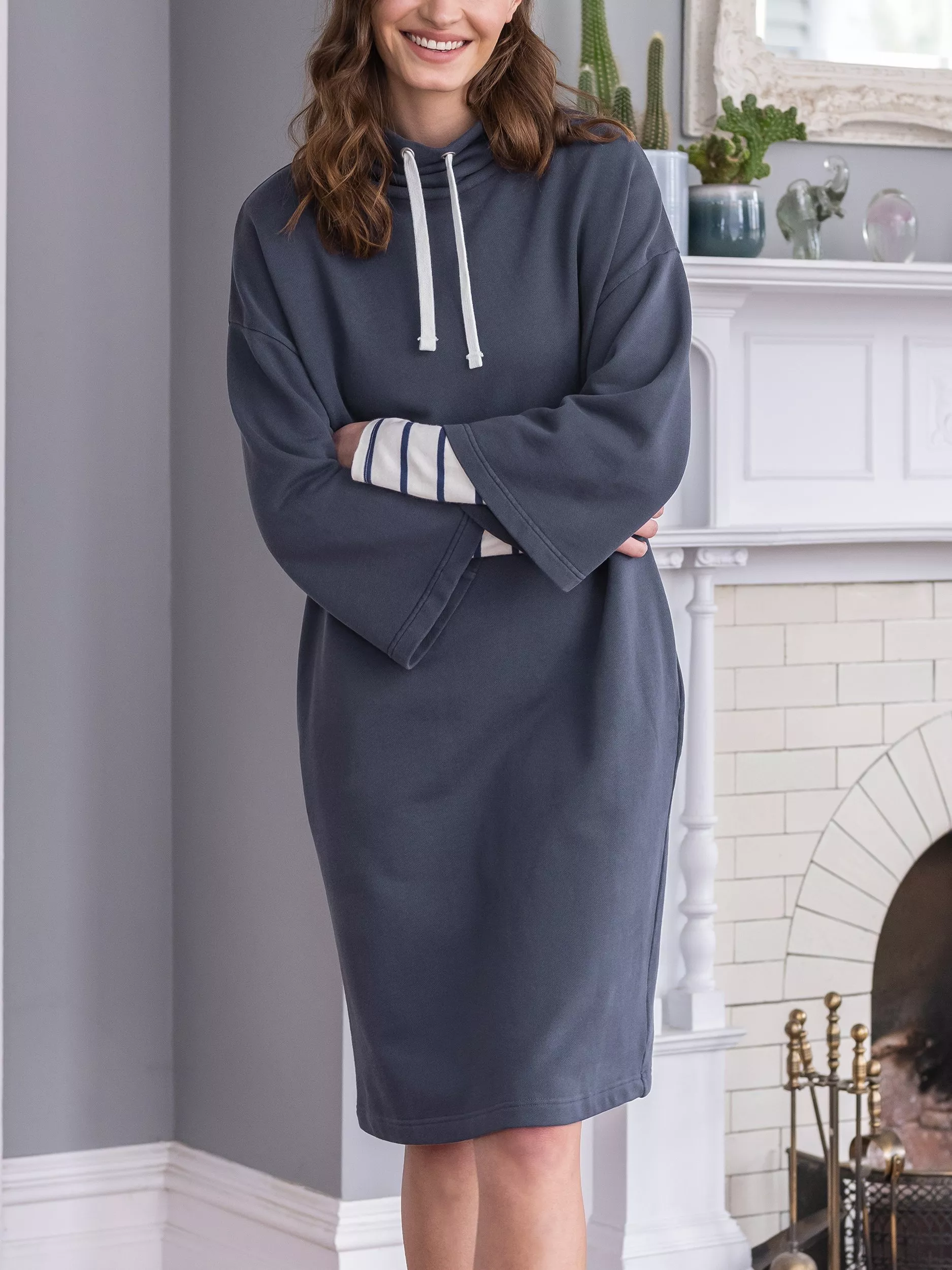 Pull up the cosy, double layered hood and snuggle down in comfort. Part of our lounge collection, this hooded jumper with long, warm sleeves is easy to style when both lounging at home or heading out. Details include a short button through placket on the front and drawstring hem detail with a tonal drawcord.
