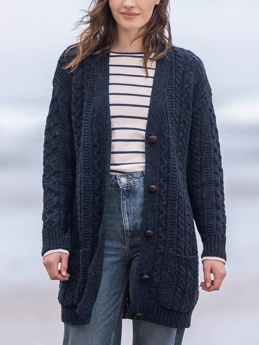Celtic & Co.Cable Boyfriend Wool Cardigan, Navy