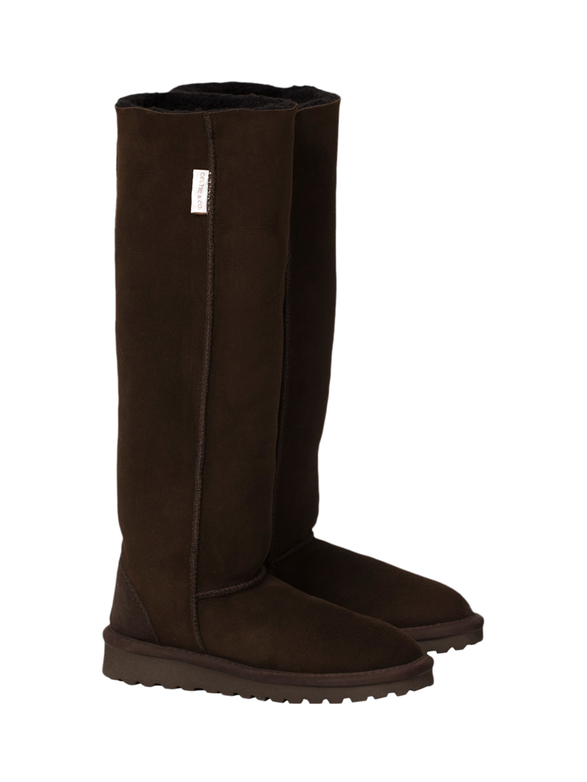 Trusty sheepskin boots with a touch of extra coverage; the Celt knee boots are a dream partner for our knit dresses on sunny days when there's still a little chill in the air. Handcrafted in Cornwall from rich British sheepskin, these boots are expertly made with double-stitched seams and a durable outsole with a grip-friendly structure, delivering elegant longevity to every pair. A branded flag seals off the premium approach of this pair.