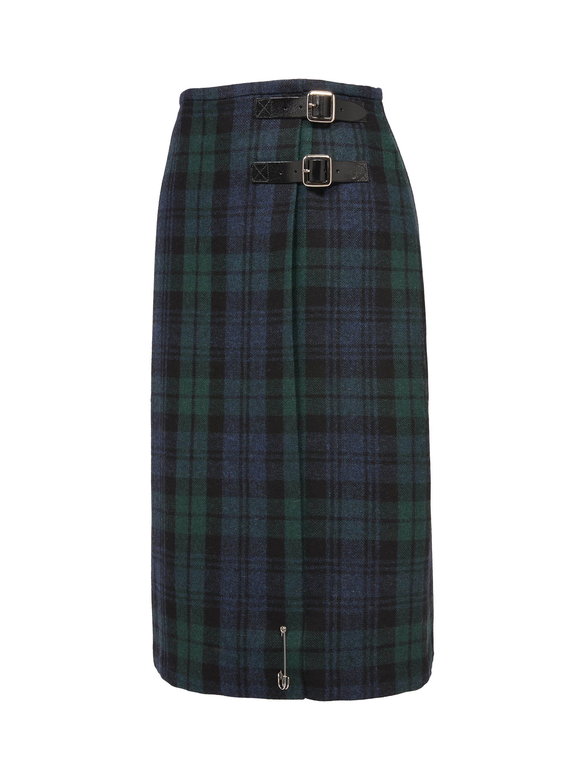 Celtic & Co.'s best-loved kilt but in a trending midi length to fall around mid calf. The longer cut makes this the ideal foundation for building a modern winter look with hints of the traditional. Expertly crafted for Celtic & Co. by one of the last remaining kilt manufacturers in Scotland, this fully lined kilt is made in pure wool with a wrapped design and twin leather straps for an adjustable fit at the waist. Team it with our felted funnel-neck jumper and your favourite boots. And don't forget your kilt pin: those in the know place it on the right-hand side between 2-4 inches from the bottom and 1.5-2 inches from the side.