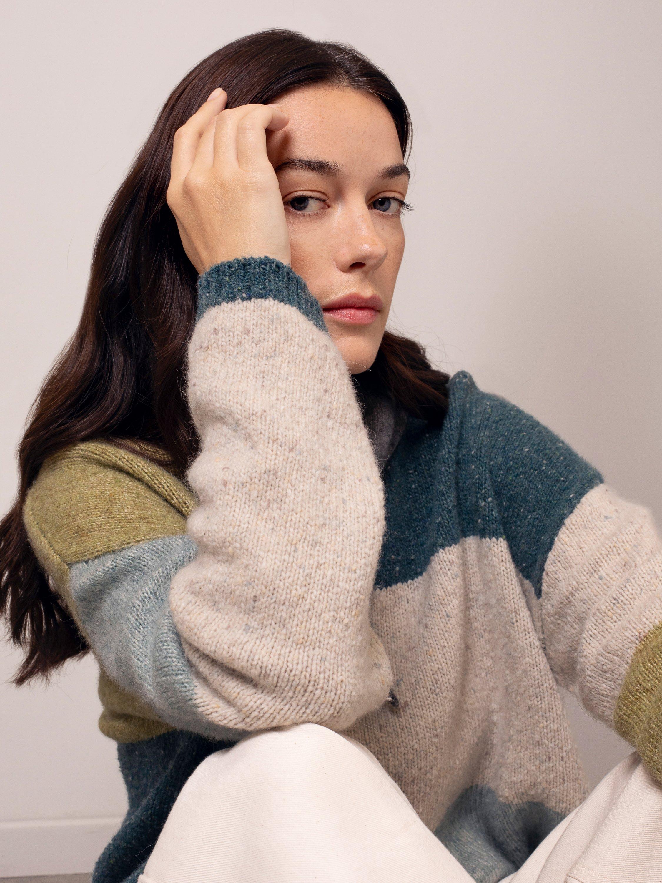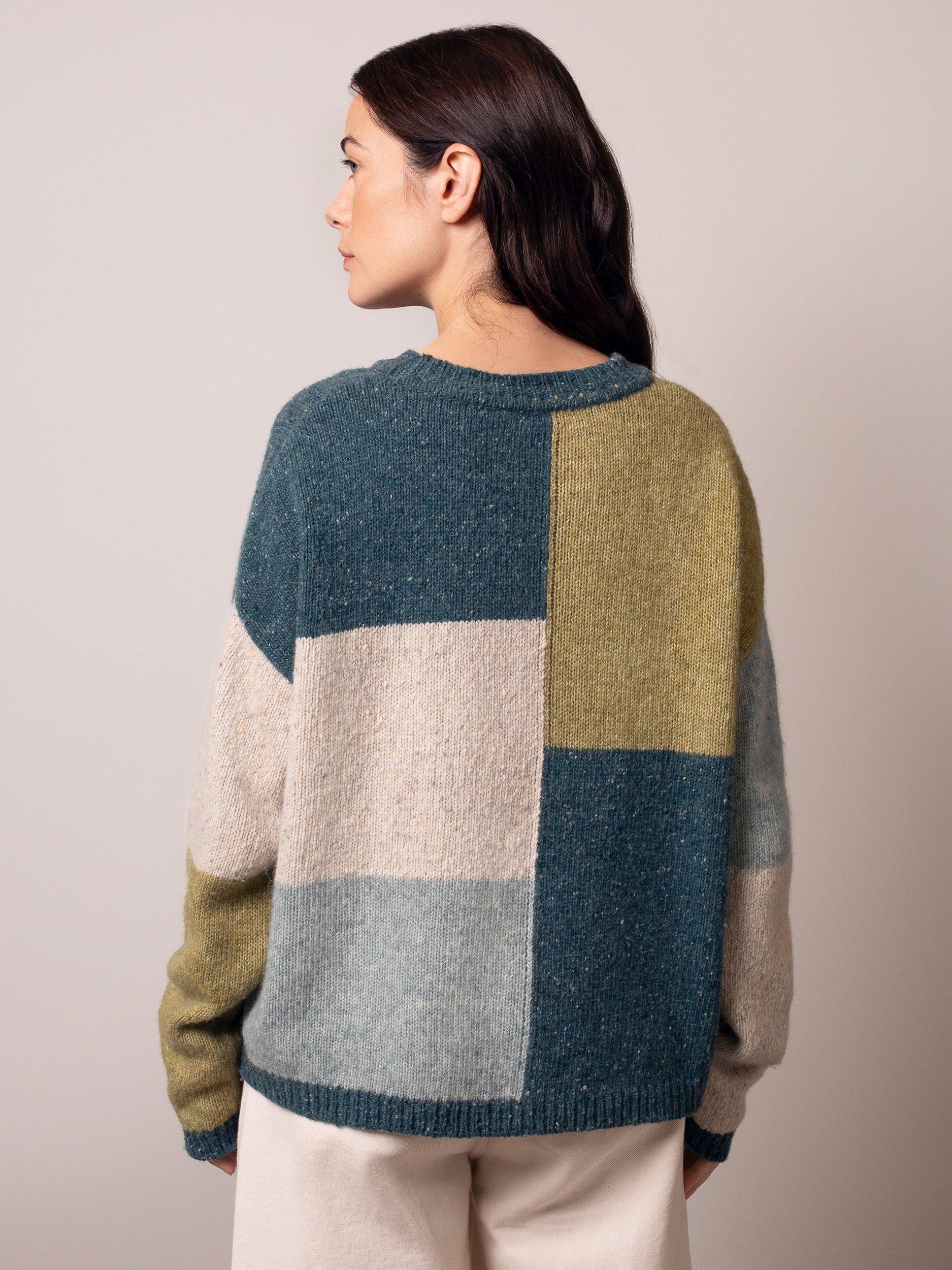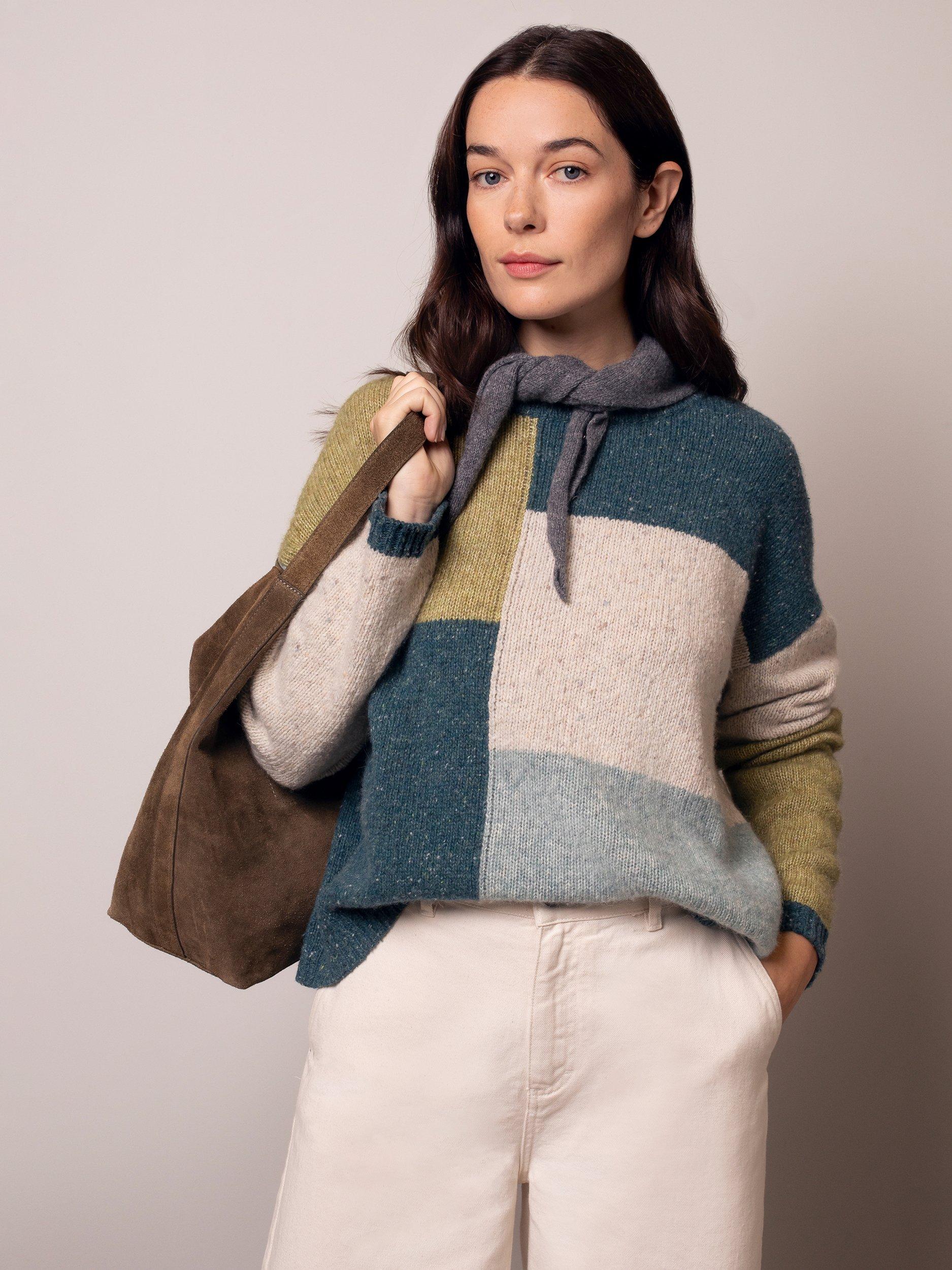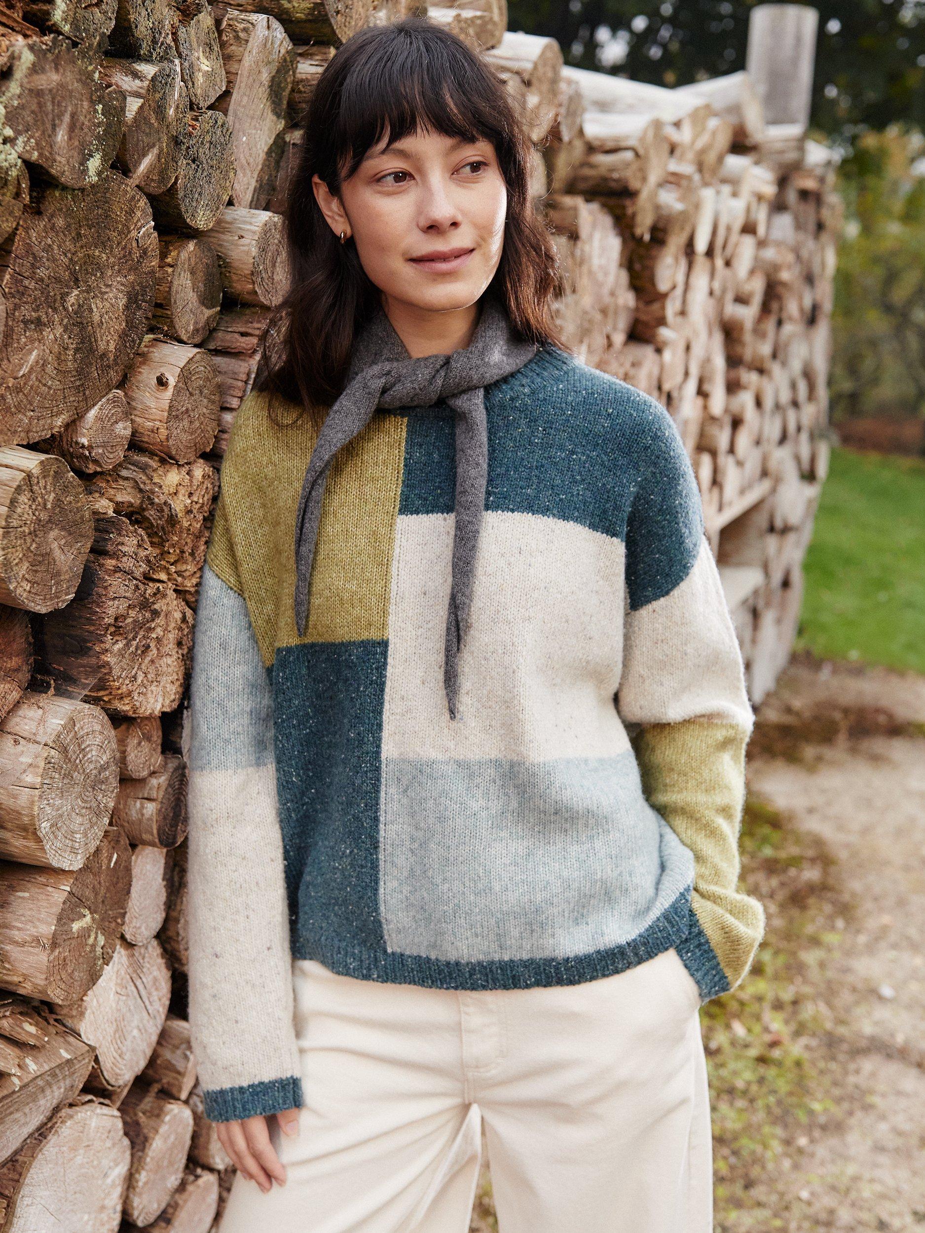 The Colourblock Intarsia Jumper showcases a striking intarsia colourblocking pattern inspired by aerial views of fields, combining flecked and lofty yarns to create rich texture and depth. Designed with a classic crew neck, relaxed drop shoulders, and ribbed trims, this jumper offers a comfortable and stylish layer that complements any wardrobe. The fabric feels soft and inviting, providing warmth without compromising breathability, making it a versatile choice for everyday wear. Its thoughtful design ensures both comfort and enduring style.