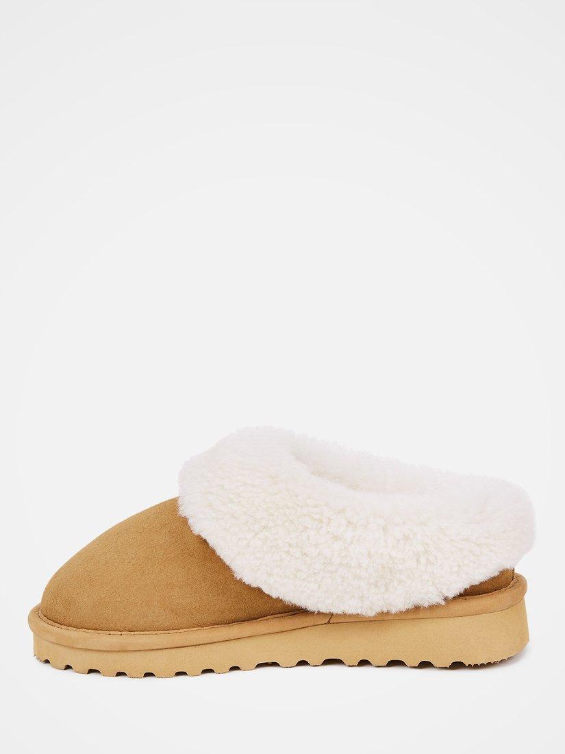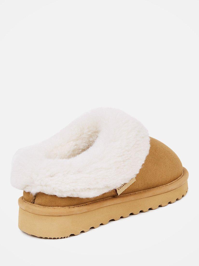 Crafted by hand in its Cornish workshop, this luxurious pair is designed in double-faced sheepskin with suede at the outer and curly wool at the collar and insole.
