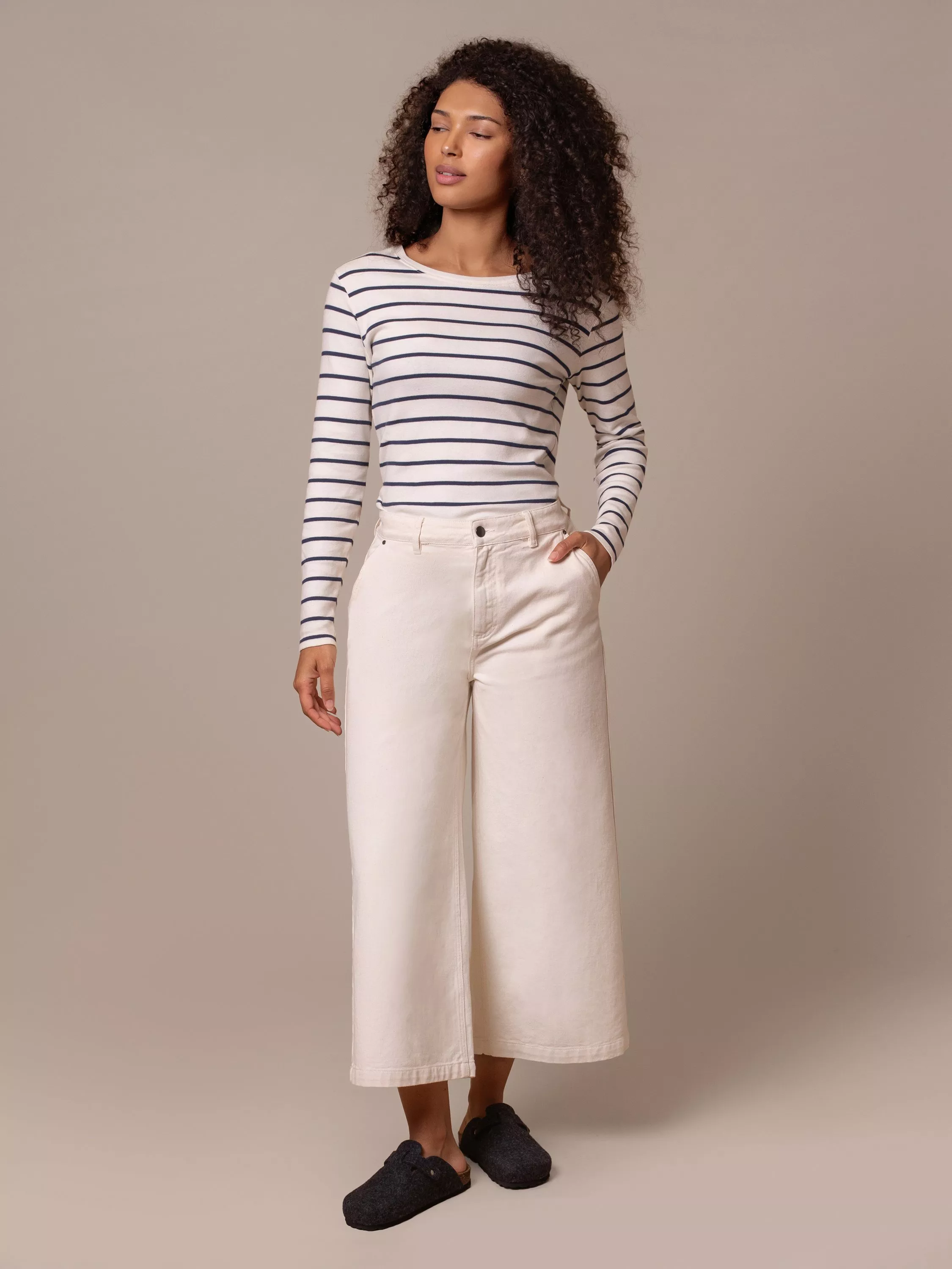 Crafted from cotton, these cropped trousers feature a wide, straight leg for a clean, contemporary silhouette. The undyed fabric offers a natural finish, while the cropped length adds versatility.