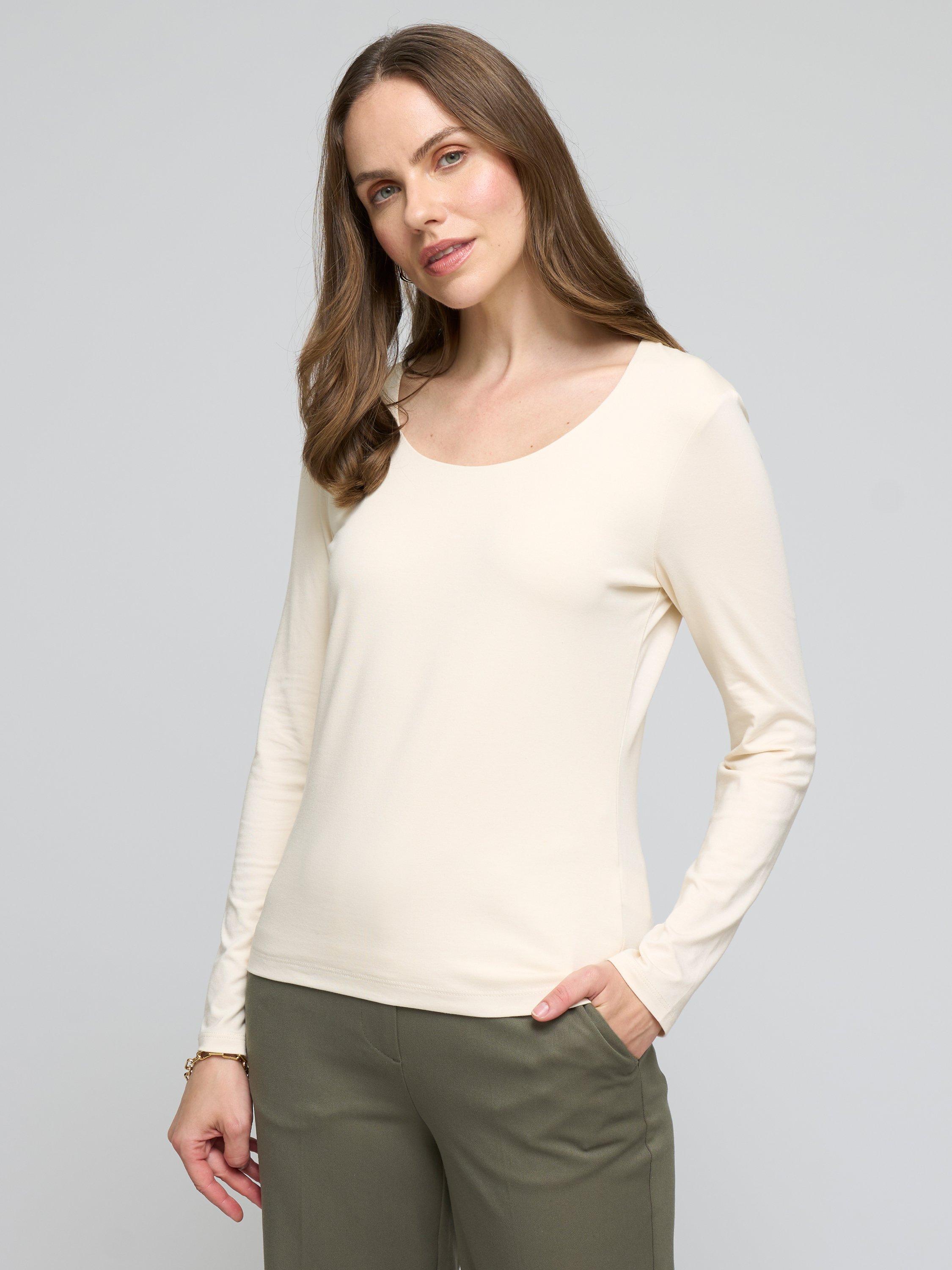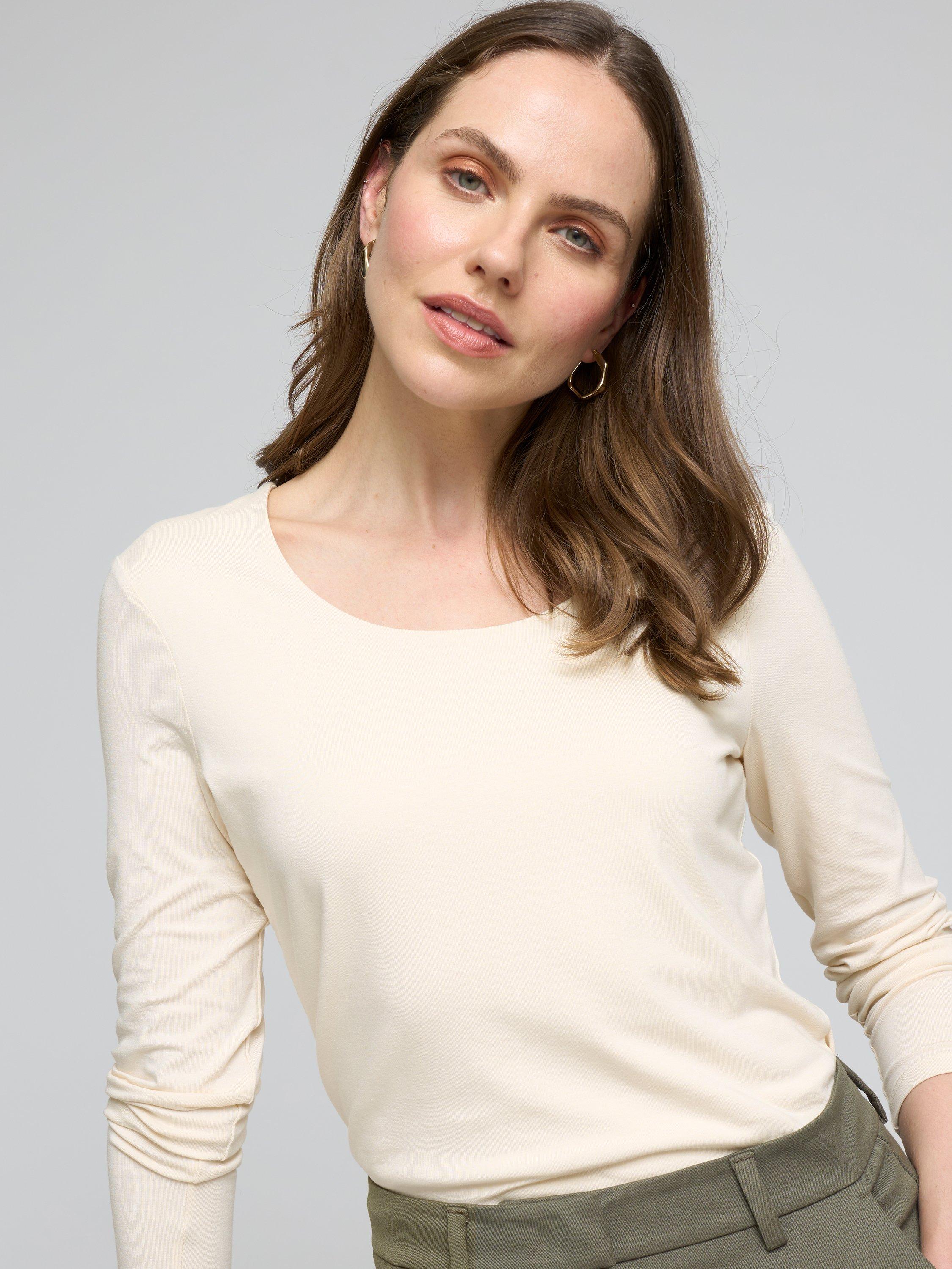 An elevated basic from our Darcey collection with a scoop neckline. The double fronted construction of the Darcey range gives support and a smart, smooth finish, perfect for those who need something slightly more elevated than a basic tee.